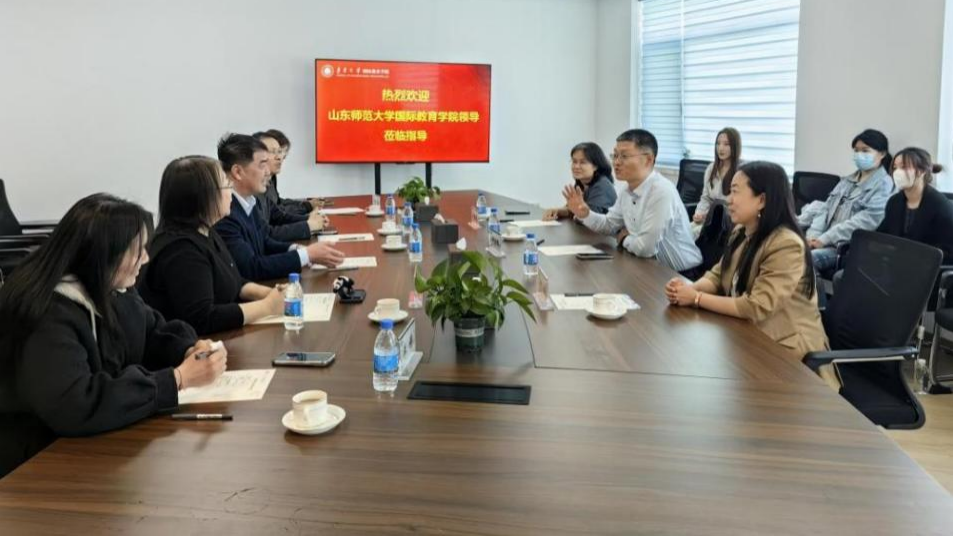 学院副院长郑翠、留学生工作办公室教育科科长安春华、留学生工作办公室招生科科长曹洋及实习指导教师王爽一行前往山东理工大学开展座谈交流,实地考察留学生教学实践。
