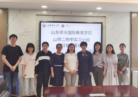 为做实做细实习学生的实习内容,进一步推进实习工作的针对性,加强与山东师范大学第二附属中学的联系与沟通,6月3日上午,山东师范大学国际教育学院史洁教授、张庆艳老师前往山师二附中看望实习生并参加了国际教育学院首批赴山东师范大学第二附属中学实习生的座谈会。山师二附中校长毛利新及初三语文组教师朱莲莲及实习学生参加了会议。会议由朱莲莲老师主持。