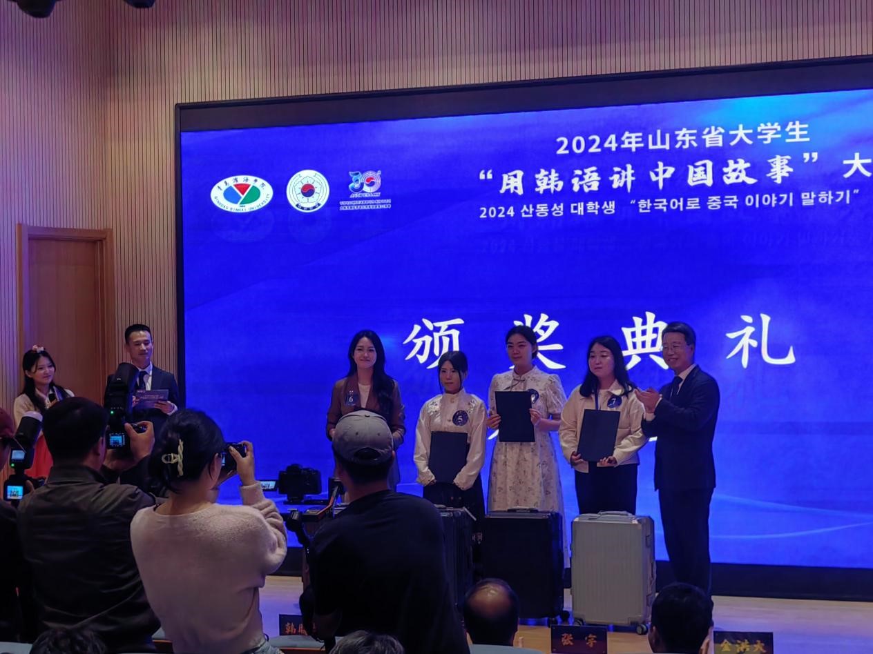 10月26日,由青岛滨海学院与大韩民国驻青岛总领事馆主办,山东省教育国际交流协会协办的山东省大学生“用韩语讲中国故事大赛”在青岛滨海学院国际学术交流中心举行,来自全省18所高校的中韩学生参加比赛。我院推荐的韩国学生金旻祉代表山东师范大学参赛,经过激烈角逐,取得了一等奖。