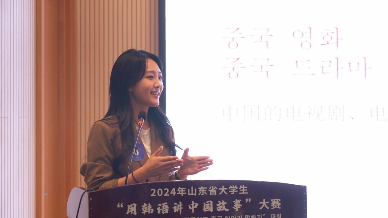 青岛滨海学院常务副校长韩晓萌、大韩民国驻青岛总领事馆副总领事崔康锡、山东省教育国际交流协会副秘书长栾凤池、青岛市教育局国际交流合作处处长隋世宇等领导出席活动并先后致辞。上午10时,比赛正式开始,现场气氛热烈。参赛作品中有关于中国传统文化的《从管鲍之交看友谊》《黄河故事》等;也有对历史名人的解读,如《孔子》《东坡苏轼》《花木兰》等。现场选手的精彩表现也让大家对“如何讲好中国故事”有了深刻认识。我院选手金旻祉的《韩国的中国热》,从美食、电影、传统文化热等角度有声有色地展示了当代中韩两国的友好往来和牵绊,完美解读了国务委员、外交部长王毅曾说过“中韩是搬不走的近邻”这一关于中韩关系的论断。