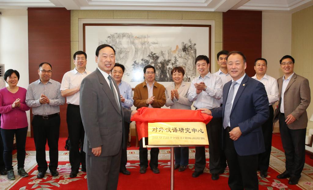 随后,社科处万光侠处长宣读了学校《关于成立山东师范大学对外汉语研究中心的通知》,张文新校长和王建勤教授共同为山东师范大学对外汉语中心揭牌,这也标志着山东师范大学对外汉语研究中心正式成立。