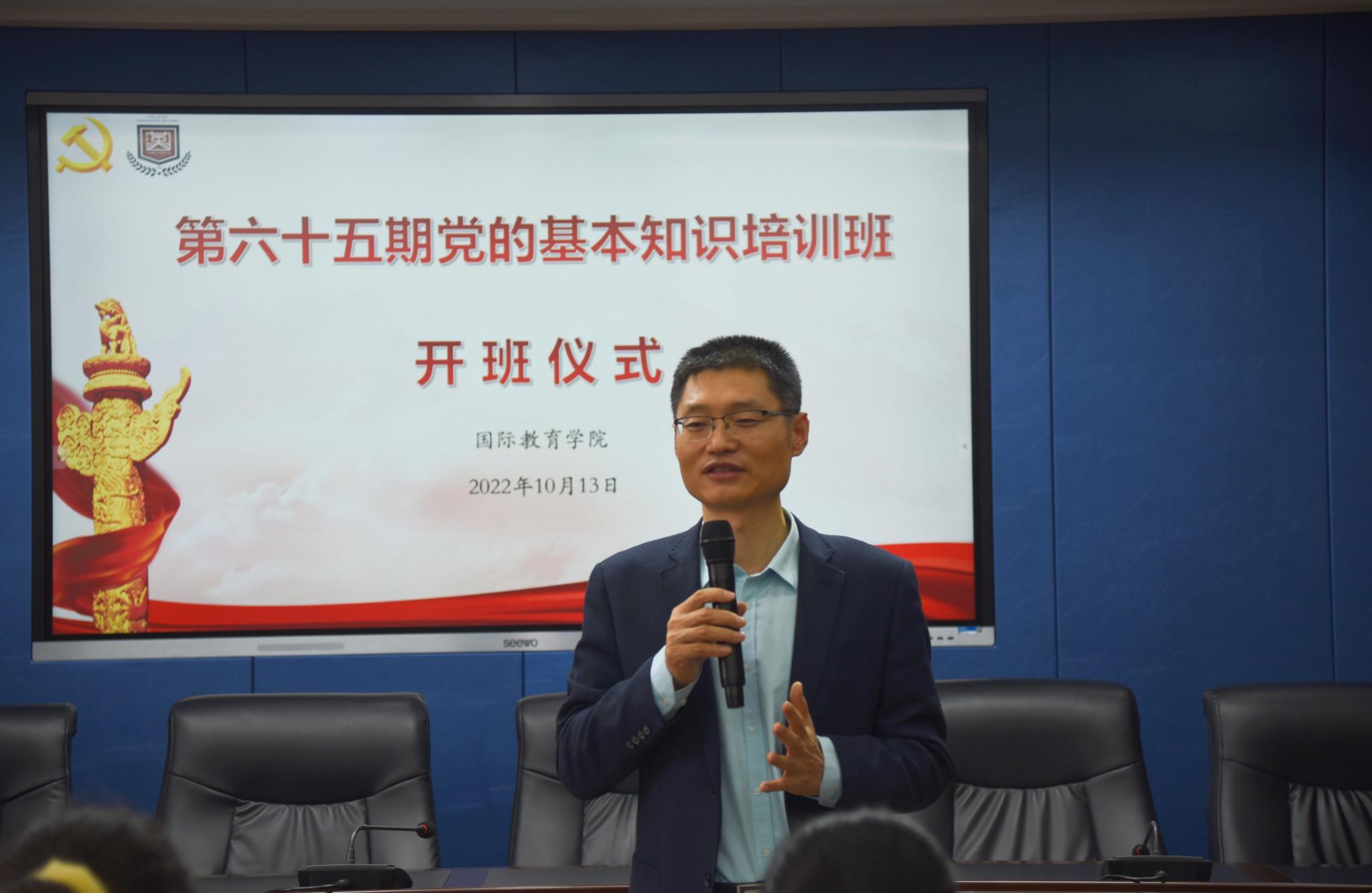 为提高入党积极分子的党性修养,端正入党态度,10月20日,国际教育学院团委于千佛山校区第三教学楼3543教室举办了第六十五期党基班开班仪式。本次开班仪式由学院党委书记刘金凯担任主讲人,党委副书记徐方杰主持会议,辅导员刘琪、魏雪玲,第六十五期党基班成员及2022级部分团员参与此次会议。