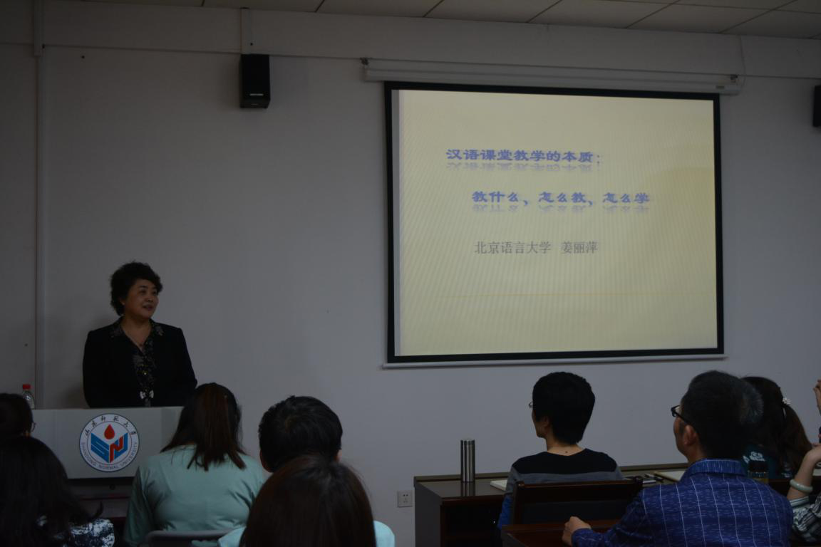 姜丽萍教授首先介绍了本场报告会的整体结构,从对外汉语教师应当具备的两大基本素质入手,提出对外汉语教师要在全面了解教学要求和学生情况的基础之上教授语言知识、传递文化,同时注重教学技能的锻炼和提升,从而更好地实现教学目标。