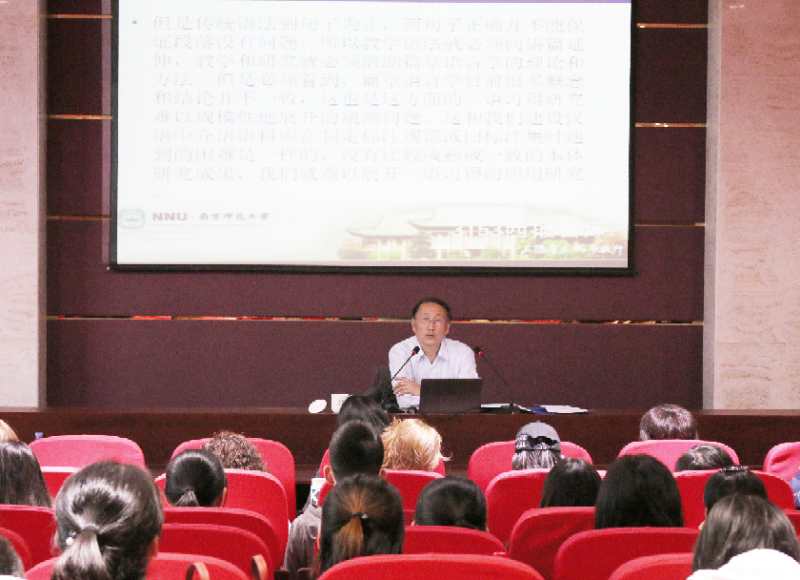 随后,肖奚强教授详细介绍了汉语本体研究对二语习得研究的重要作用。肖教授先对二语习得研究的基本理论进行了简单列举,如传统语法、结构主义语言学、语块理论、构式语法、功能语言学、认知语言学等。然后,肖教授从个人的习得研究实例出发,细致介绍了每篇论文的提要内容、选题背景和写作方法,跟在座的师生分享了自己在教学实践和学术科研中总结的经验。