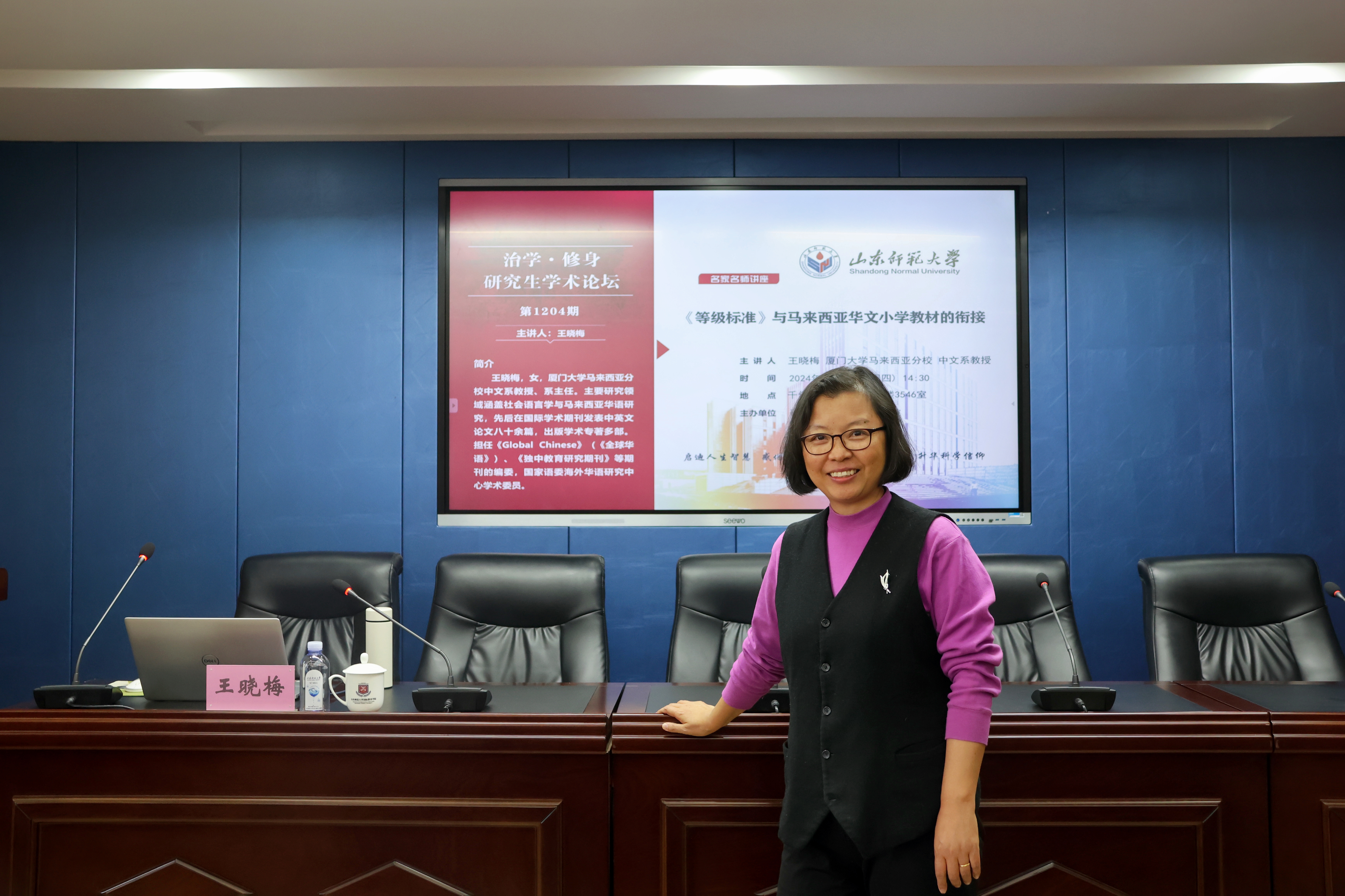 3月14日,由国际教育学院和研究生院共同主办的学术讲坛于千佛山校区教学三楼3546报告厅举办。厦门大学马来西亚分校王晓梅教授应邀为我院师生作题为“《等级标准》与马来西亚华文小学教材的衔接”的学术讲座。