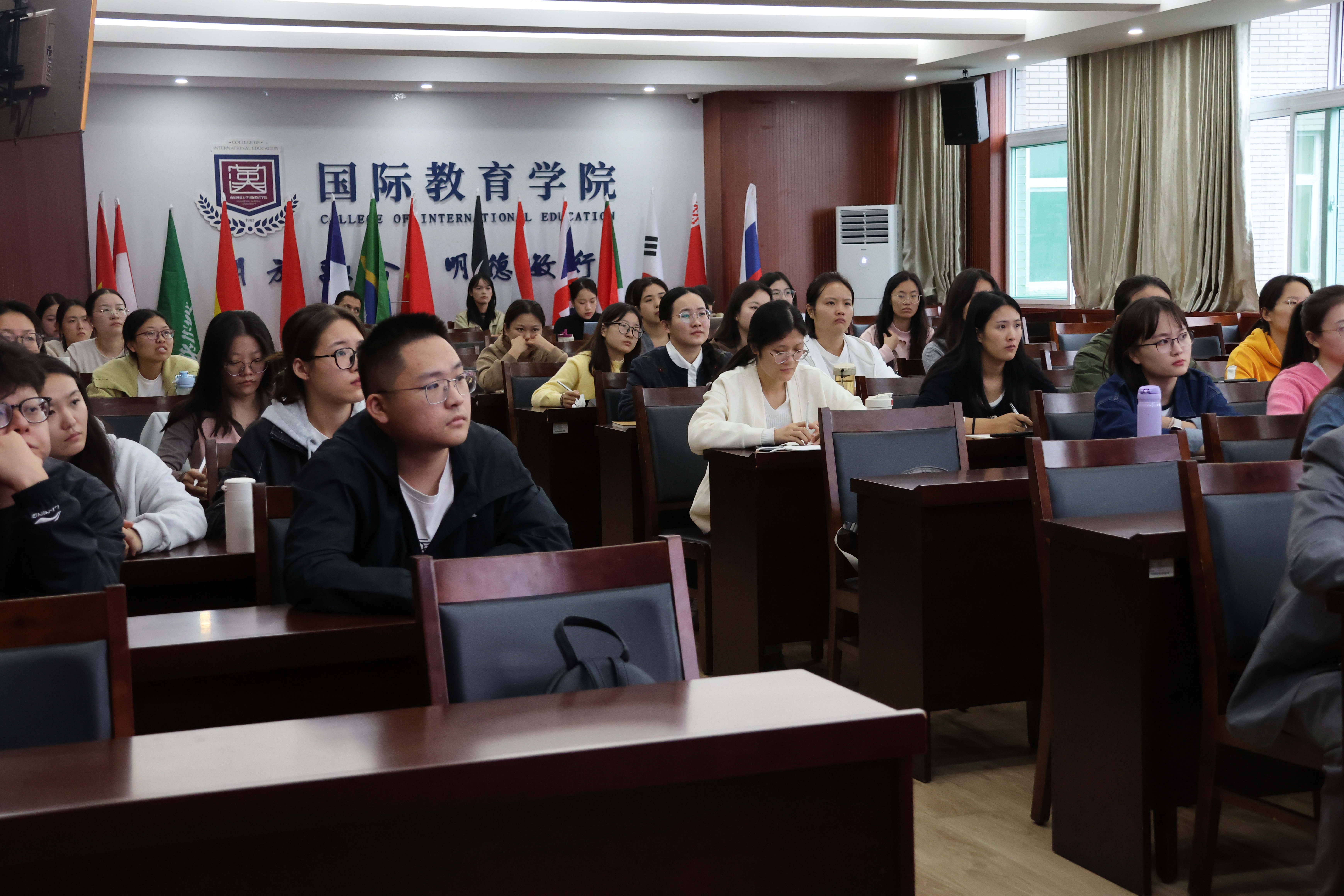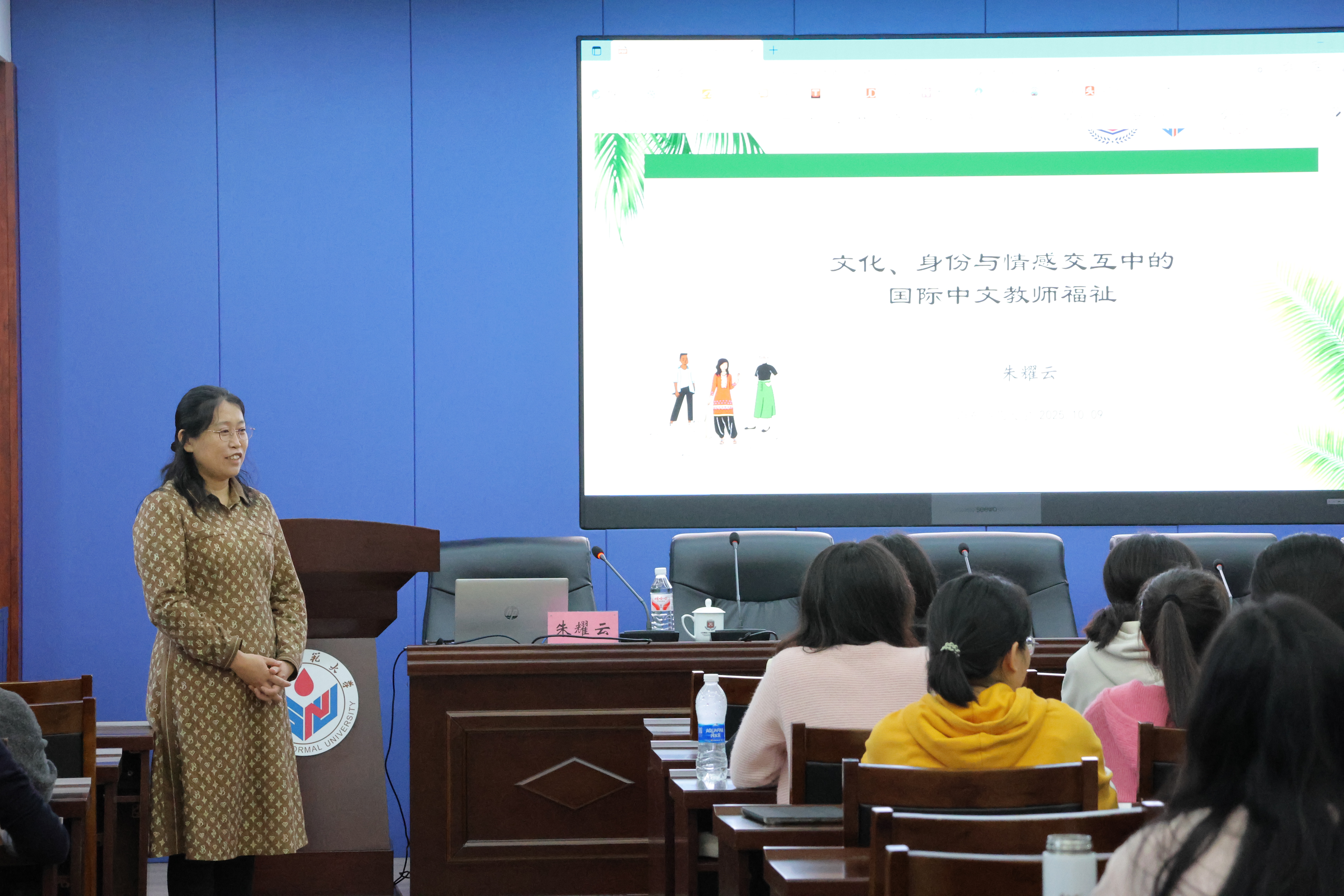 10月9日,由社会科学处、国际教育学院主办的学术讲坛于千佛山校区教学三楼3543会议室举办。山东大学朱耀云副教授应邀作题为“文化、身份与情感交互中的国际中文教师福祉”的学术讲座,2025级全体研究生参加讲座,讲座由国际教育学院院长、留学生工作办公室主任马茂祥主持。