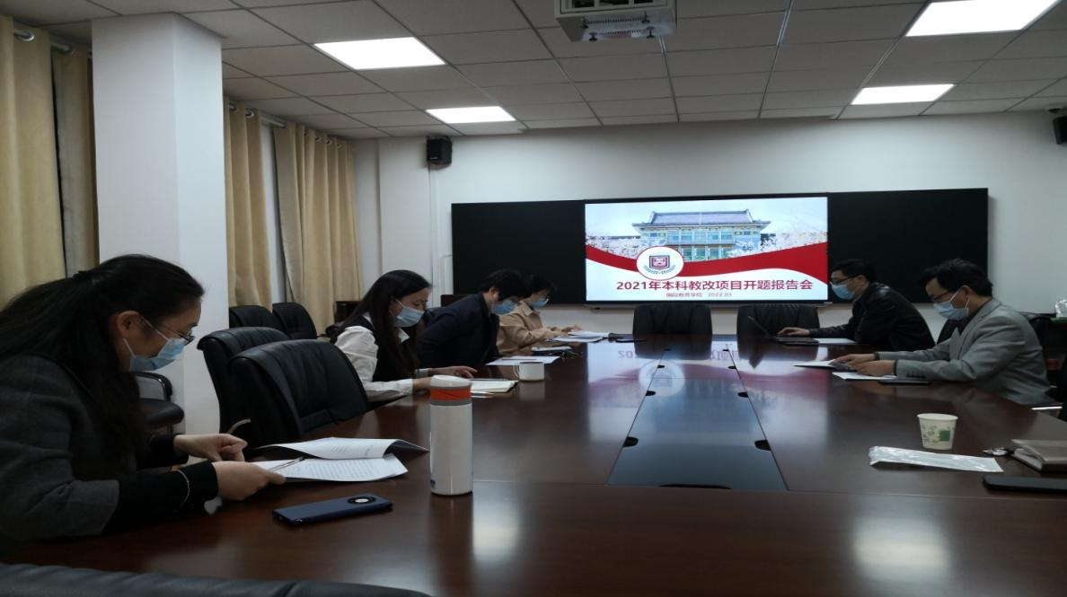 2022年3月14日晚,国际教育学院在3525会议室成功举办2021年校级教学改革项目开题论证会。学院分管教学院长马茂祥教授、副院长王其和教授、督导组组长史洁教授、系主任郑翠副教授、常庆丰副教授、张琴凤教授和刘颖博士参加本次论证会。会议由马茂祥院长主持。