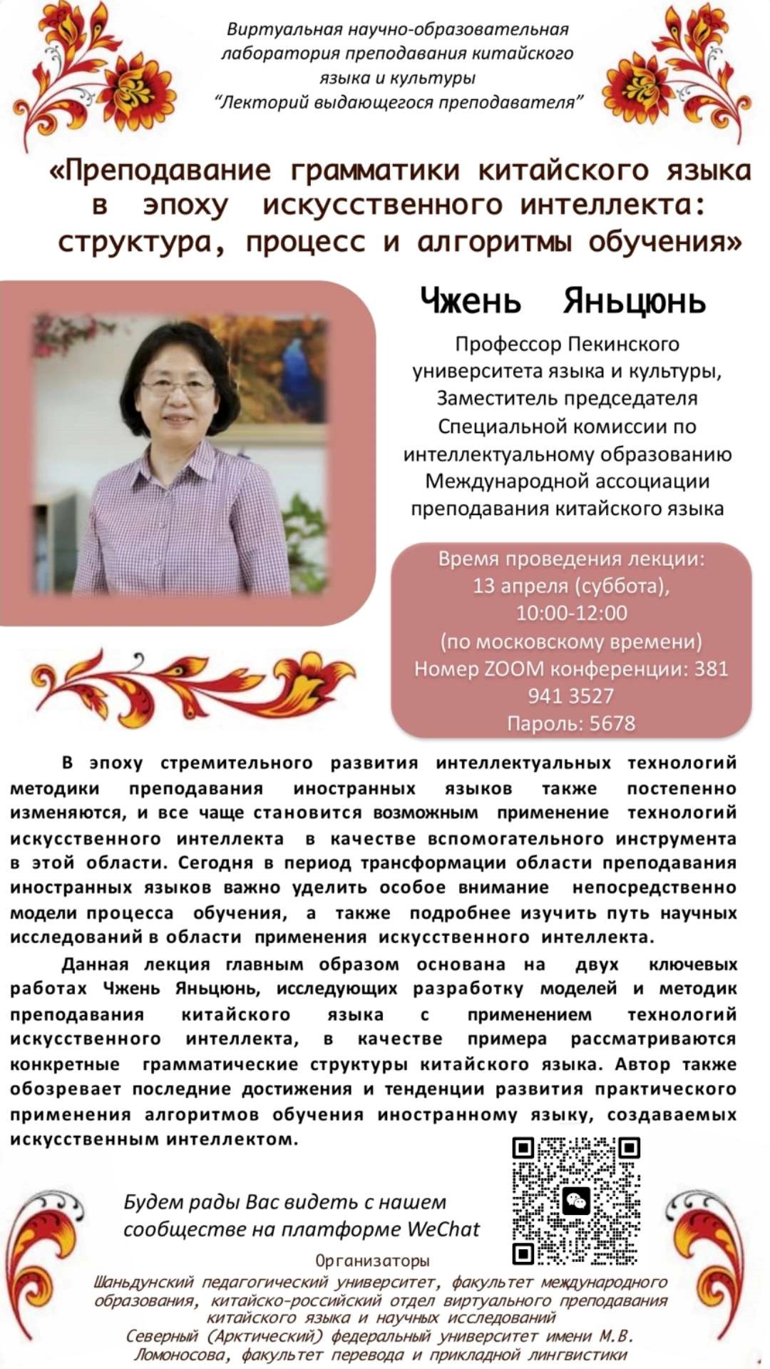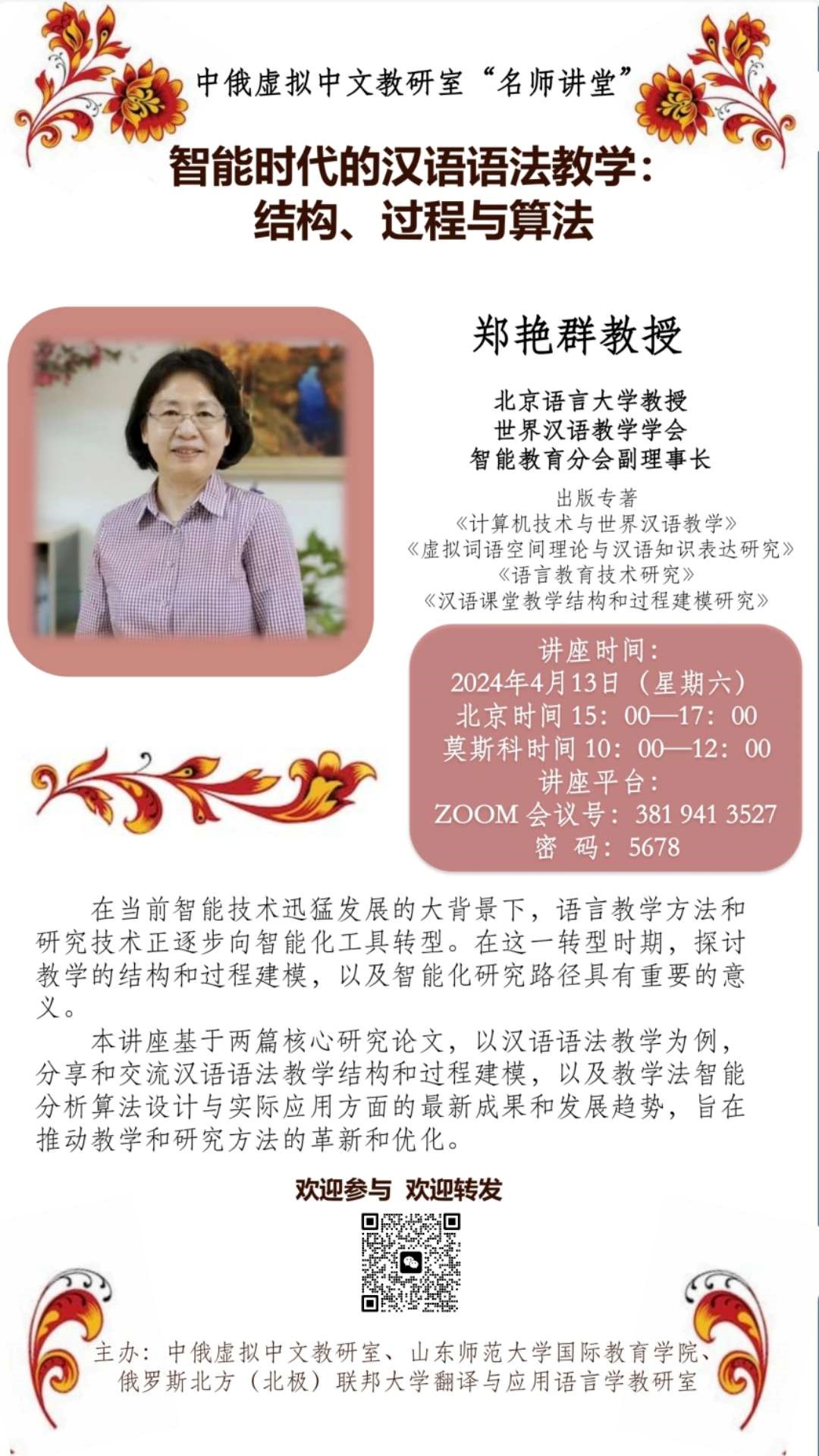 中俄虚拟中文教研室“名师讲堂”:郑艳群<智能时代的汉语语法教学:结构、过程与算法>