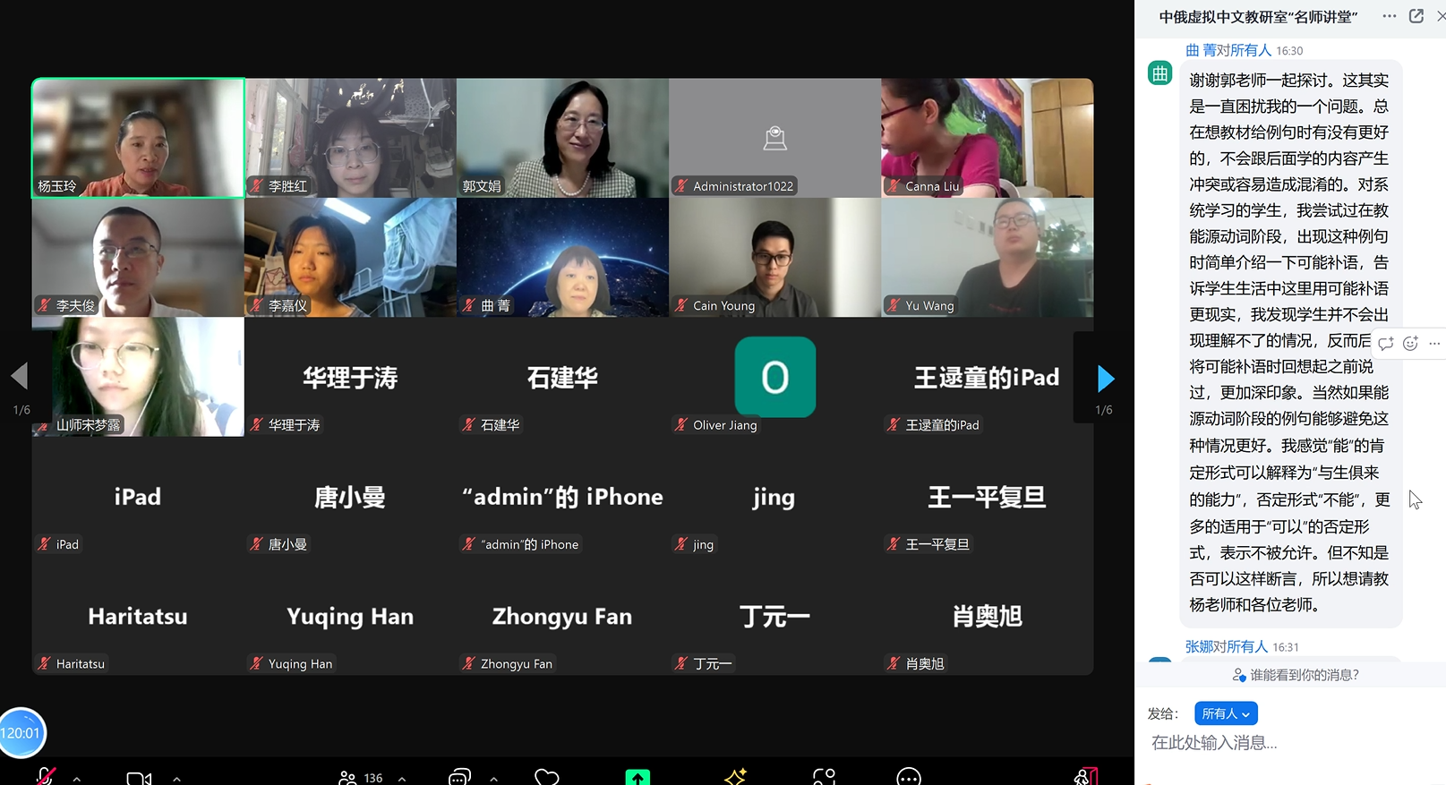 此次讲座是中俄虚拟中文教研室“名师讲堂”的第五次教研活动。讲座也吸引了更多志同道合的友人加入到虚拟中文教研室的教研共同体,期待参与到世界范围高校之间、中文教师之间的教研合作,这将有利于加快融合、创新、可持续的国际中文教师教育共同体的构建,促进国际中文教育事业的健康发展。