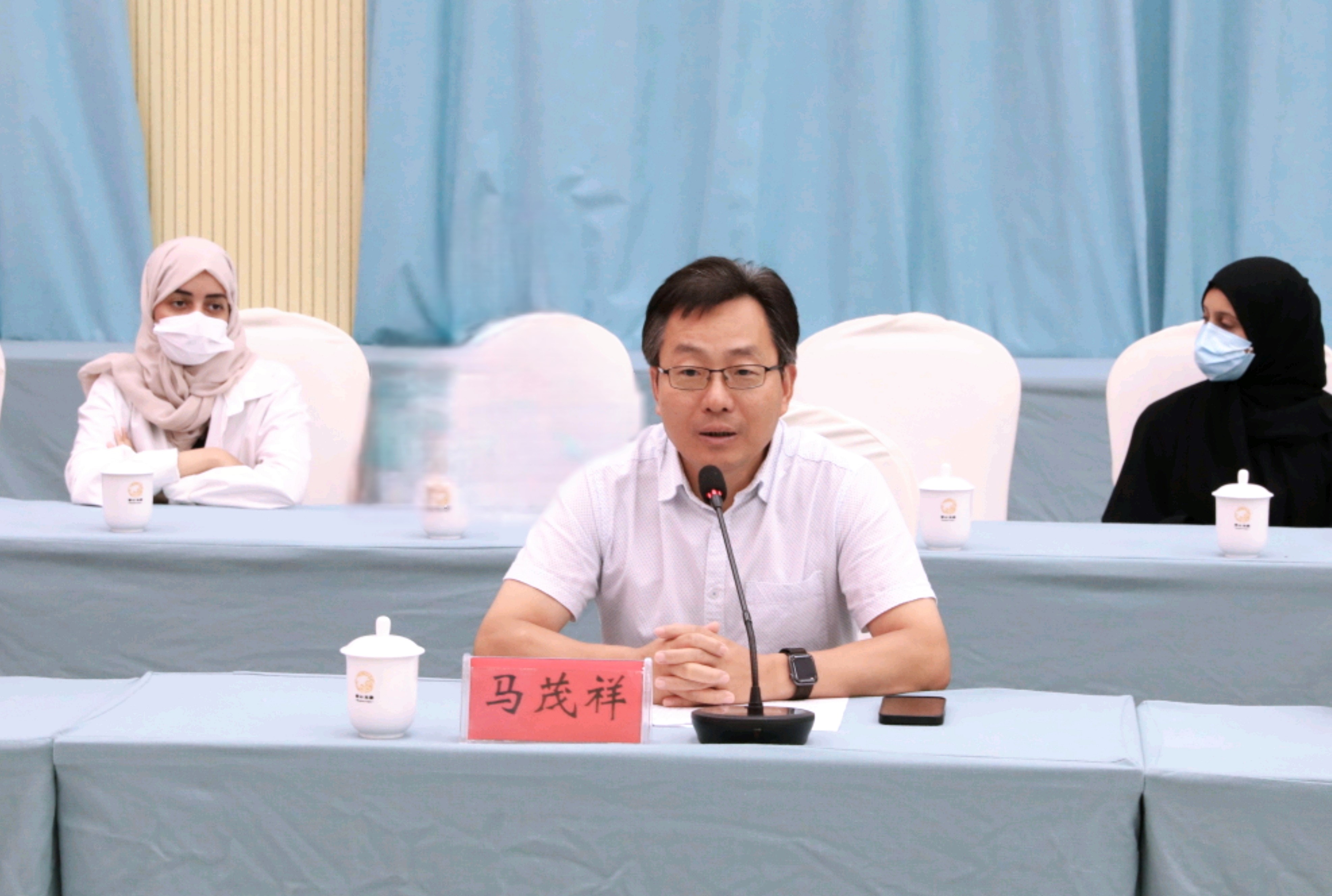 山东师范大学国际教育学院院长、留学生工作办公室主任马茂祥、党委副书记徐方杰、副院长王其和、留学生教育系主任常庆丰等领导老师以及沙特阿拉伯吉达大学师生赴沂水参与仪式。沂水县县委常委、组织部长闫从发、沂水县院东头镇党委书记王伟山、山东蒙山龙雾茶业有限公司党委书记谭庆志、董事长谭洪昌、总经理刘霞等组织并参与了仪式。