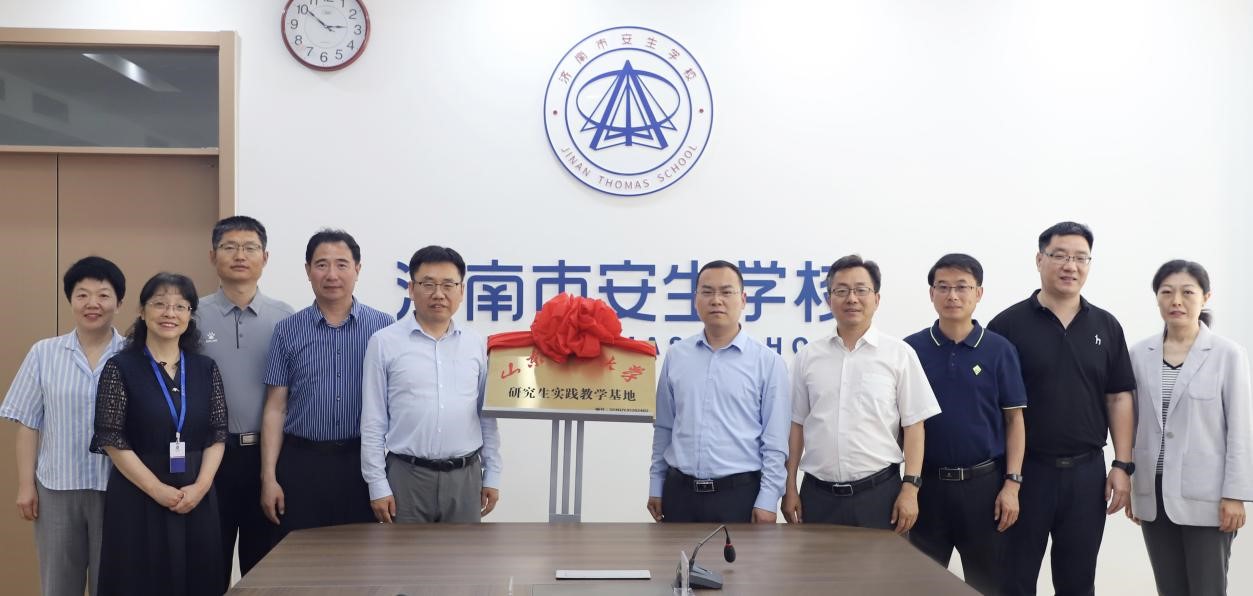 5月20日,山东师范大学与济南市安生学校举行共建研究生实践教学基地签约挂牌仪式在济南市安生学校举行,并开展访企拓岗促就业活动。我校研究生院副院长宋强,国际教育学院党委书记刘金凯,院长、留学生工作办公室主任马茂祥,副院长王其和;我校数学与统计学院党委书记战秉聚,执行院长赵强;济南市安生学校总校长武树滨,初中部校长褚爱华,高中部副校长郝卫红等出席仪式。