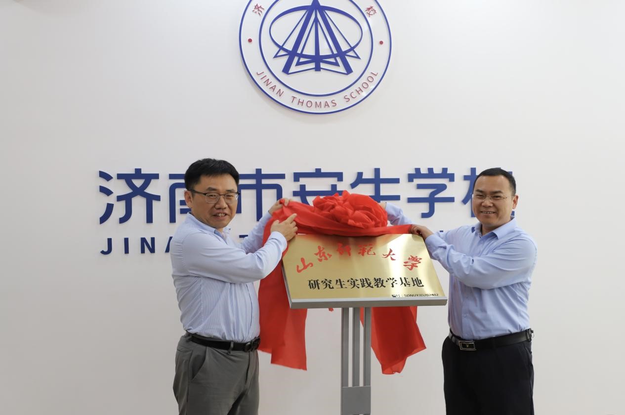 马茂祥、武树滨签署了双方合作协议书,宋强、武树滨代表双方为“山东师范大学研究生实践教学基地”揭牌。