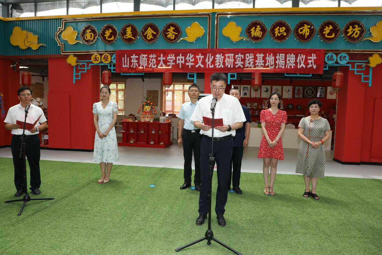 7月21日,山东师范大学中华文化教研实践基地揭牌仪式在山东手造烟台综合展示体验中心(栖霞馆)成功举行。国际教育学院党委书记刘金凯、党委副书记徐方杰、团委书记刘琪、辅导员周旦,栖霞市委常委、宣传部部长、市政府副市长张海涛,栖霞市委宣传部副部长、文联主席胡国峰等出席仪式。栖霞市民间文艺家协会会员代表与在当地进行暑期“三下乡”活动的七名国际教育学院“栖火传‘青’,霞光筑梦”实践队成员参与了活动。