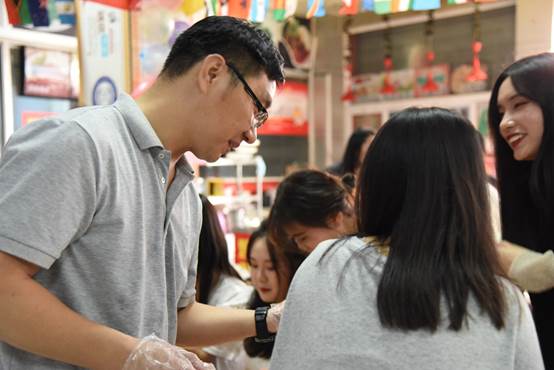 为了活动的顺利进行,组织中秋活动的同学们提前前往餐厅布置场地。打扫卫生、吹气球、悬挂装饰品、安排座位、清点礼品,大家各司其职,为活动的举办做好最后的准备工作。活动伊始,餐厅的工作人员向同学们现场展示了月饼的各种原材料及制作月饼的方法。制作面皮、捏合馅料、模具压合……同学们兴致勃勃,积极参与到制作月饼的每一个环节中,向身边的朋友展示自己的动手成果。通过亲手体验制作月饼,了解中国的中秋传统文化,同学们对中秋的习俗有了进一步的理解。国际教育学院2021级研究生李智慧同学说:“通过这次包月饼的活动,大家分工合作,更加团结。看到自己完成的月饼也非常骄傲。”