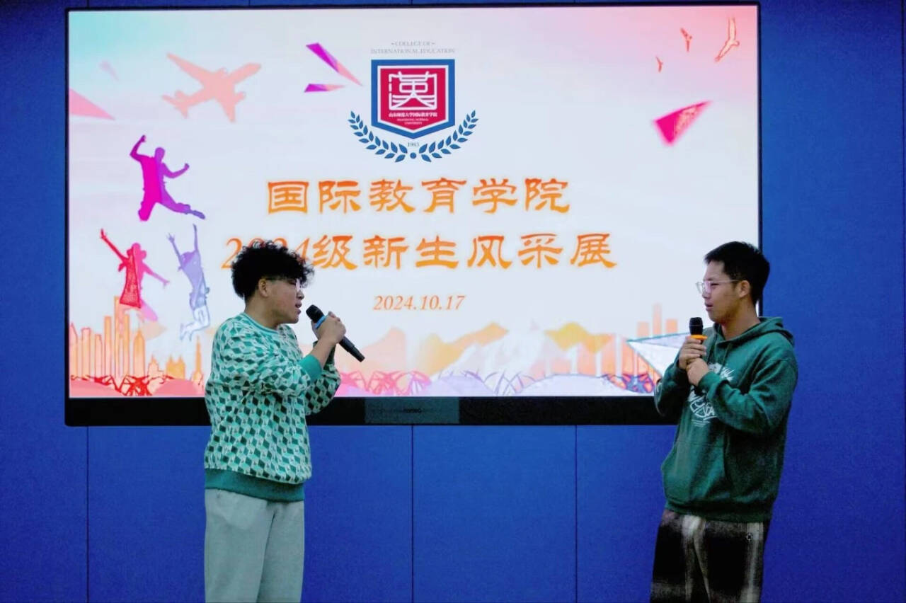 为展现青年学子风采风貌,10月17日下午,国际教育学院于千佛山校区教学三楼3543教室成功举办2024级新生风采展。国际教育学院学工办主任、团委书记刘琪,辅导员魏雪玲、周旦及院学生会执行主席孟璐、庄斐琪、文体活动部部长张珂作为嘉宾到场出席,2024级部分学生参与其中。