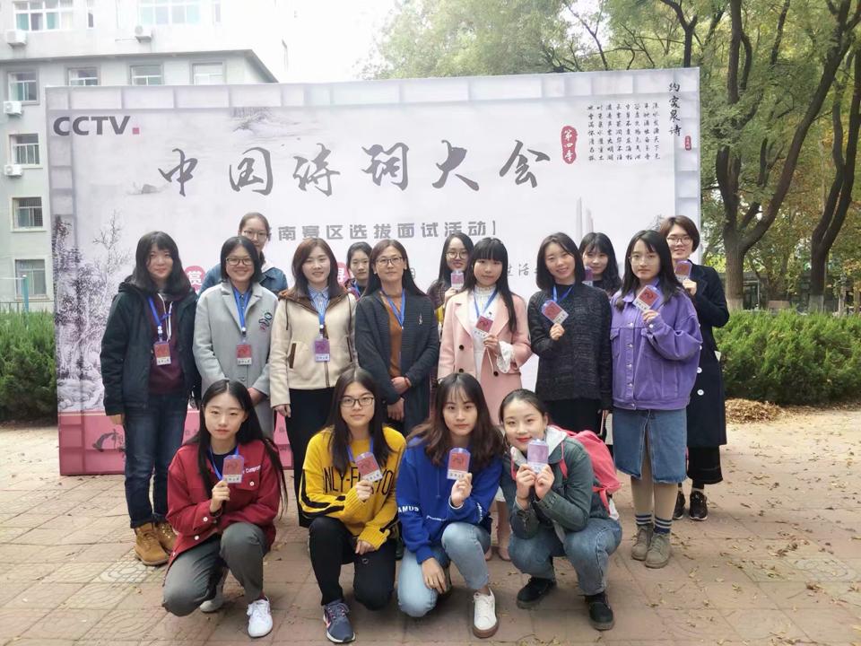 11月3日,CCTV中国诗词大会第四季(济南赛区)选拔面试活动在山东师范大学教学三楼举办。此次活动由教育部、中央广播电视总台指导,山东省教育厅、山东省语言文字工作委员会主办,山东教育卫视、山东省语言文字工作委员会办公室承办,山东师范大学、山东省方言吟诵普查工作办公室协办。国际教育学院青年志愿者协会负责选拔赛的服务工作。