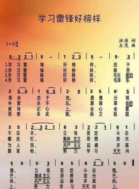 《学习雷锋好榜样》是为歌颂雷锋、弘扬雷锋精神而创作的歌曲,由洪源作词、生茂作曲。曲子简洁明快、铿锵有力,以其特有的旋律和激情,感染和激励着一代又一代人。