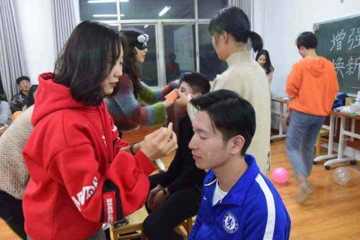 接着,游戏环节正式开始。首先进行的蒙眼化妆游戏拉进了师生距离,辅导员刘琪与同学们打成一片,现场气氛热烈活跃。随后的游戏项目更是多彩纷呈,同学们认真阅读游戏规则,配合默契,你追我赶,场上不时爆发阵阵掌声与欢笑声。在“心有灵犀”环节中,裴昊曹泊静组合凭借生动的表达和默契的配合赢得第一名。“一反常态”环节由辅导员刘琪亲自出题,题目花样百出,同学们也出彩不断,现场气氛逐渐走向高潮。接下来的“听歌识曲”环节同学们更是各不相让,爆笑不断,现场气氛达到了高潮。最终李嘉宁、何倩、裴昊等同学在游戏中表现突出,赢得由辅导员刘琪亲自提供的丰厚奖品。游戏结束后,主持人致辞,活动结束。