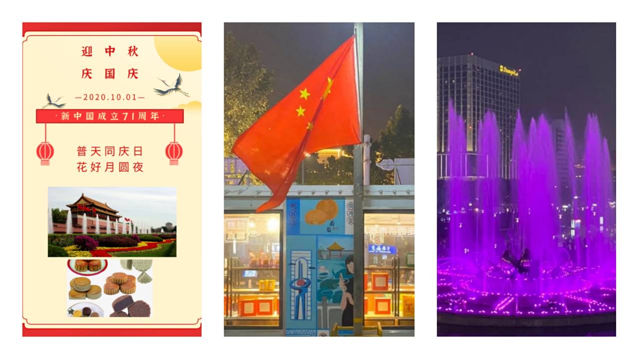为欢贺国庆中秋双节,本次活动分组征集了大量原创设计海报及摄影作品。其中,海报设计组作品在古典与现代的碰撞中生发新意,照片摄影组作品则展现了老济南国庆与中秋新旧习俗的融合。国际教育学院本科生在活动中呈现了《家国同乐,山河无恙》、《人间》、《五星红旗下的月饼店》等一系列深蕴美好期望、满含家国情怀的优秀作品。活动投稿结束后,作品以微信推送的形式进行展示并开放投票通道,国际教育学院学生会根据票数得出评选结果:唐凯雯同学和李健灵同学获一等奖,戴瑞洁等四名同学获二等奖,李芷任等七名同学获三等奖,另有裴昊等三名同学获优秀奖。