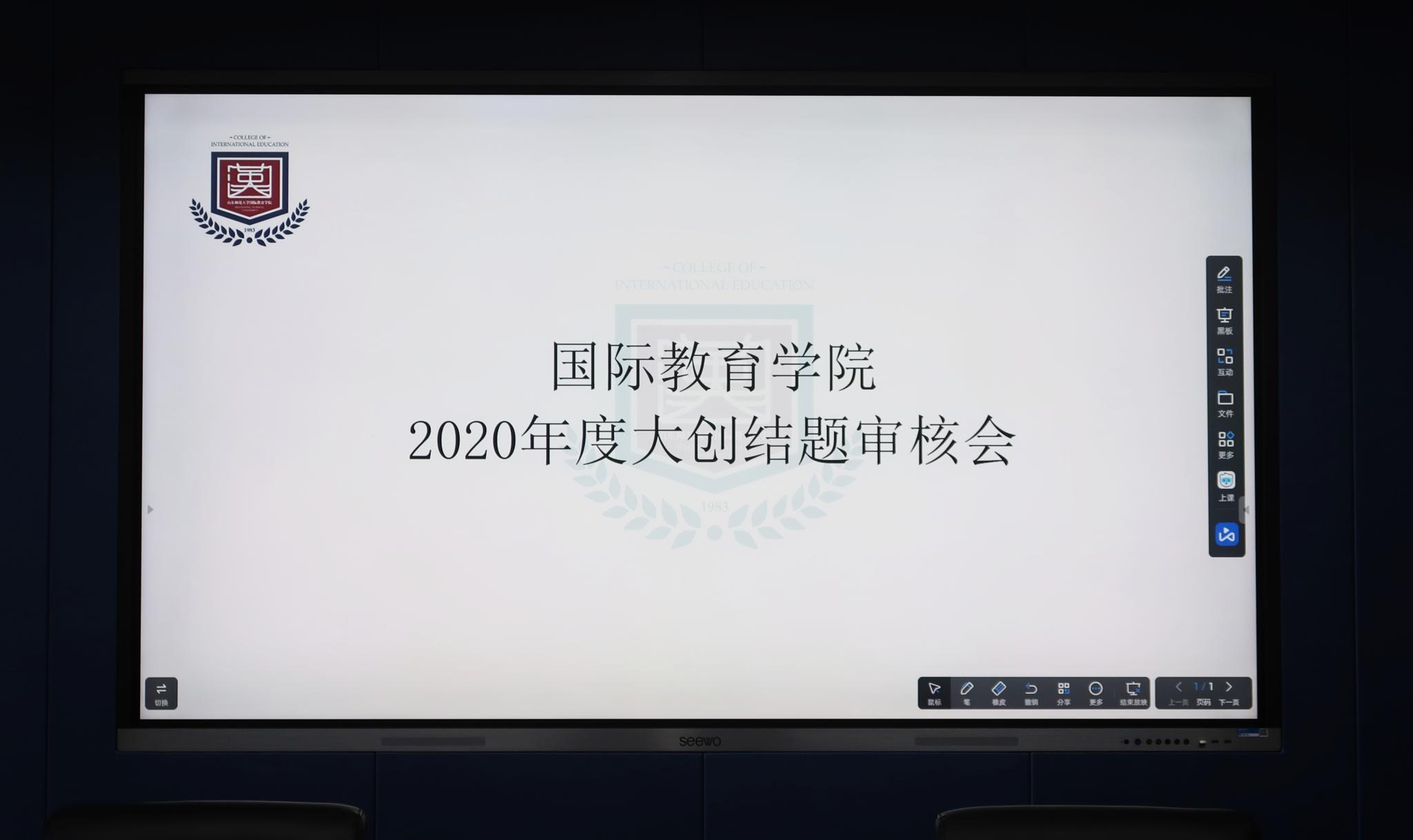 2021年11月12日,国际教育学院于千佛山校区3543教室顺利举行2020年度大创结题审核会。国际教育学院党委副书记孙全志出席,学院教师史洁、刘艳平、骆牛牛、辅导员魏雪玲以及2020年度各大创项目代表参加会议。