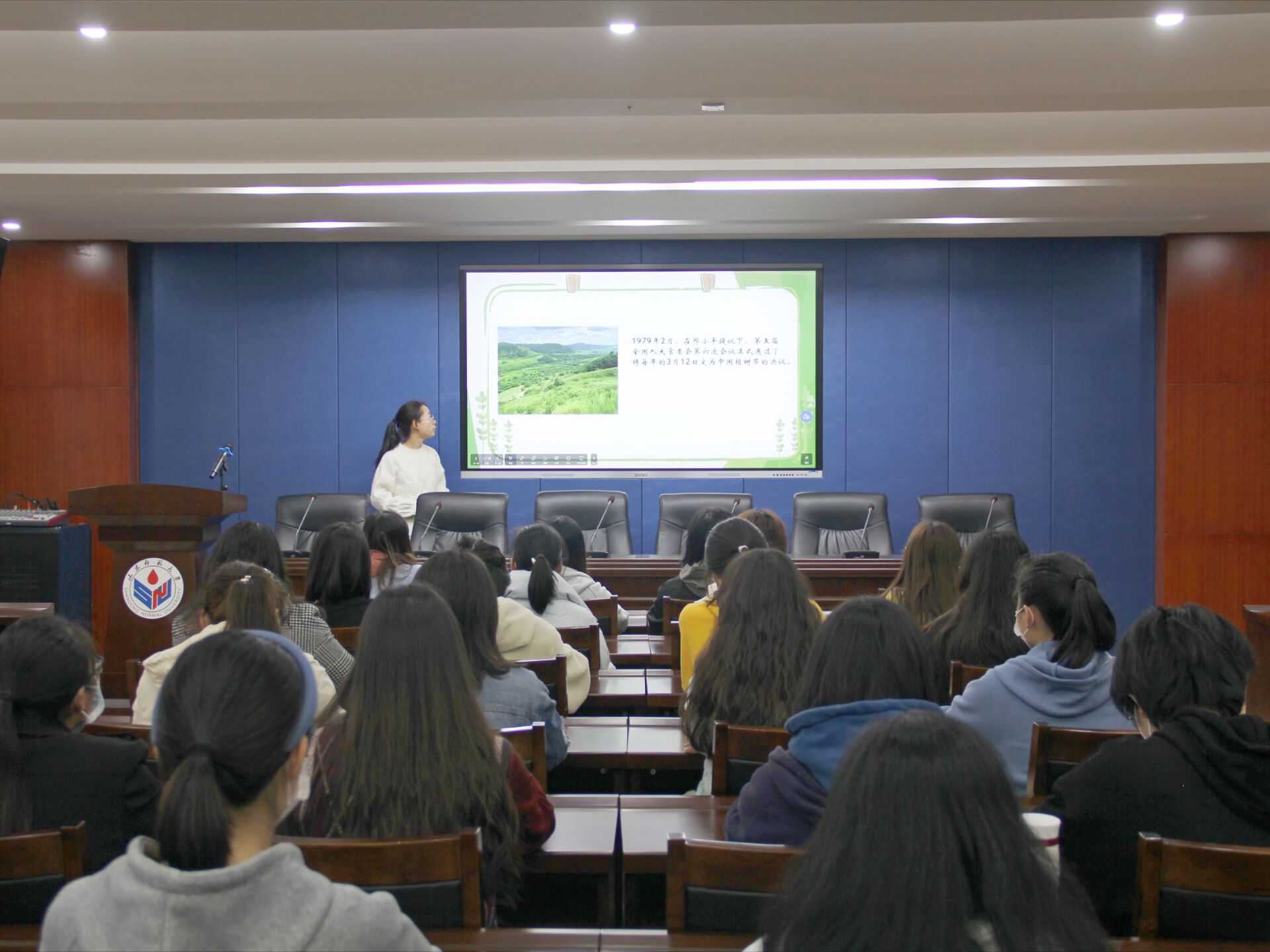 本次讲座共分为“雷锋精神宣讲”和“植树节普及”两个环节。讲座伊始,戴艺文从雷锋的个人简介和日记入手,重温雷锋记忆。随后,她对雷锋事迹进行生动讲解,并结合近期山东师范大学四名学生根据寻人启事找回出走少年、我院青年志愿者协会志愿活动和建设校园的鲜活事例,鼓励同学们心系社会、服务人民。在学深悟透雷锋精神后,杨晓蕾围绕植树节的来源、活动、发展和意义四个方面作了深入浅出的介绍。她呼吁同学们爱绿、护绿、兴绿,践行绿色发展理念,坚持人与自然和谐共生,为国家生态环保事业贡献新时代青年的智慧和力量。讲座气氛热烈,雷锋精神和生态文明思想深入人心,与会学生纷纷表示受益匪浅。
