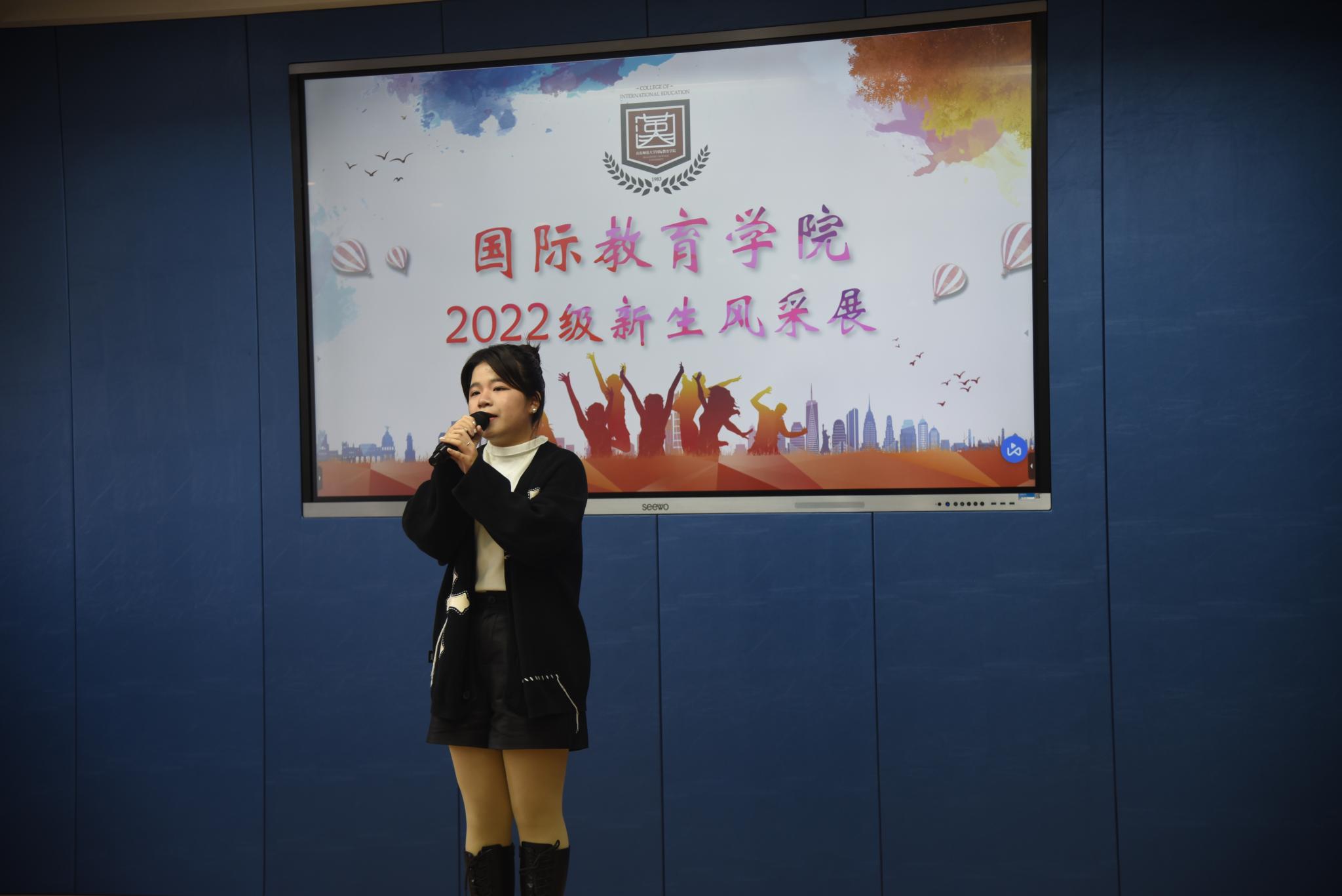 10月27日下午,国际教育学院于千佛山校区第三教学楼3543教室成功举办2022级新生风采展。辅导员刘琪、魏雪玲、周旦及院学生会主席团作为嘉宾到场,2022级部分学生参与其中,在场师生共享视听盛宴。