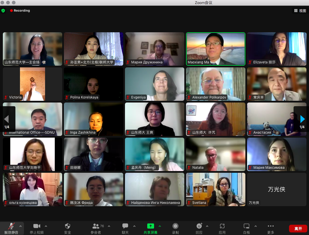 开营仪式由山东师范大学国际教育学院院长马茂祥教授主持。山东师范大学副校长万光侠、山东师范大学国际交流与合作处(港澳台事务办公室)处长周连勇、山东师范大学国际教育学院党委书记刘金凯、副院长王其和、留学生教育系主任常庆丰、俄罗斯北方联邦大学人文社科与国际交流学院院长马库林·阿尔乔姆·弗拉基米罗维奇、副院长扎希希娜·茵加·米哈伊洛夫娜、翻译与应用语言教研室主任波利卡波夫·亚历山大米·哈伊洛维奇、翻译与应用语言教研室德鲁日尼娜·玛丽亚·维亚切斯拉沃夫娜以及此次冬令营项目负责人郭文娟、俄罗斯北方联邦大学中文教师孙亚男、冬令营教师代表王爽、项目主讲教师及助教、北极联邦大学上百位师生参加了开营仪式。