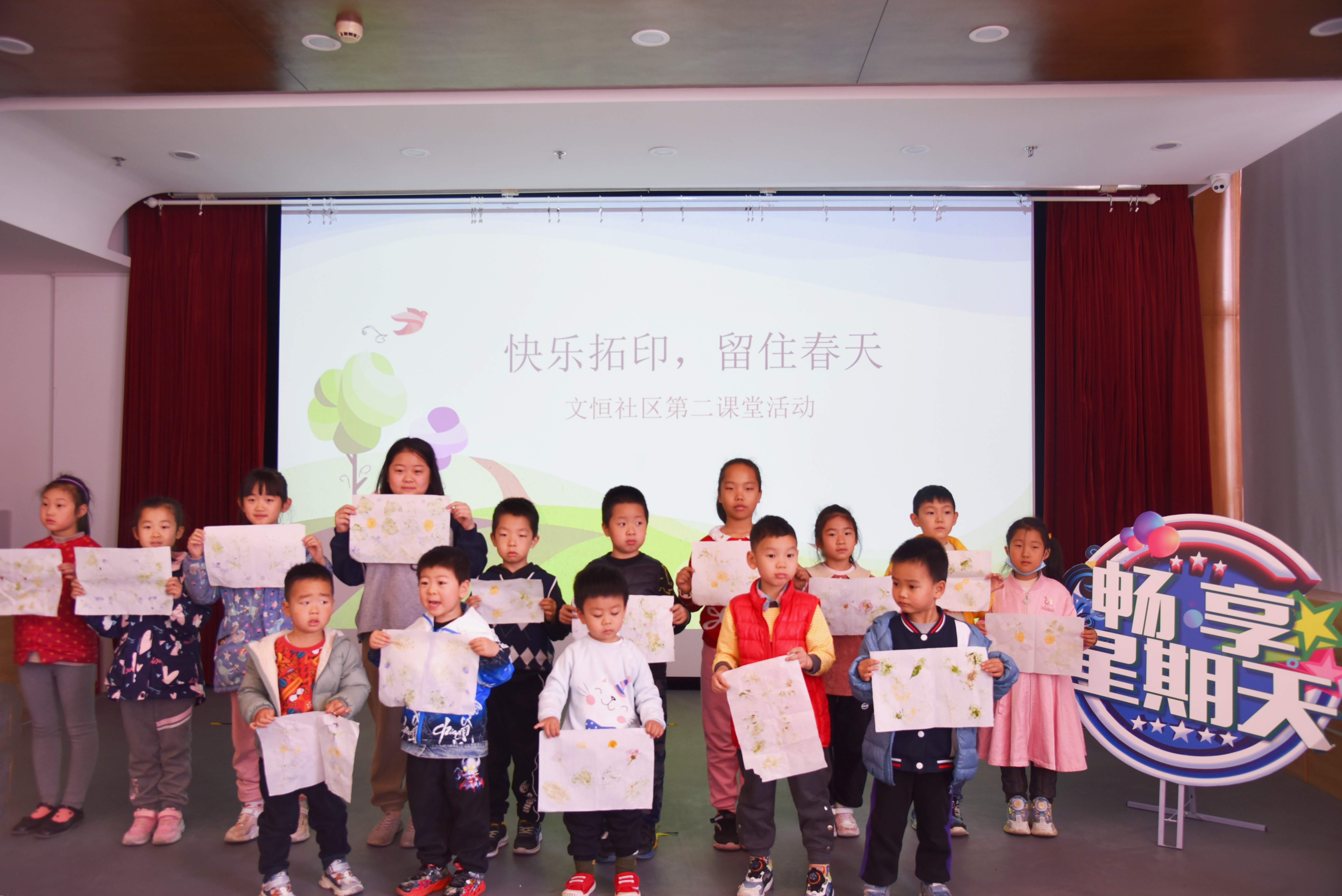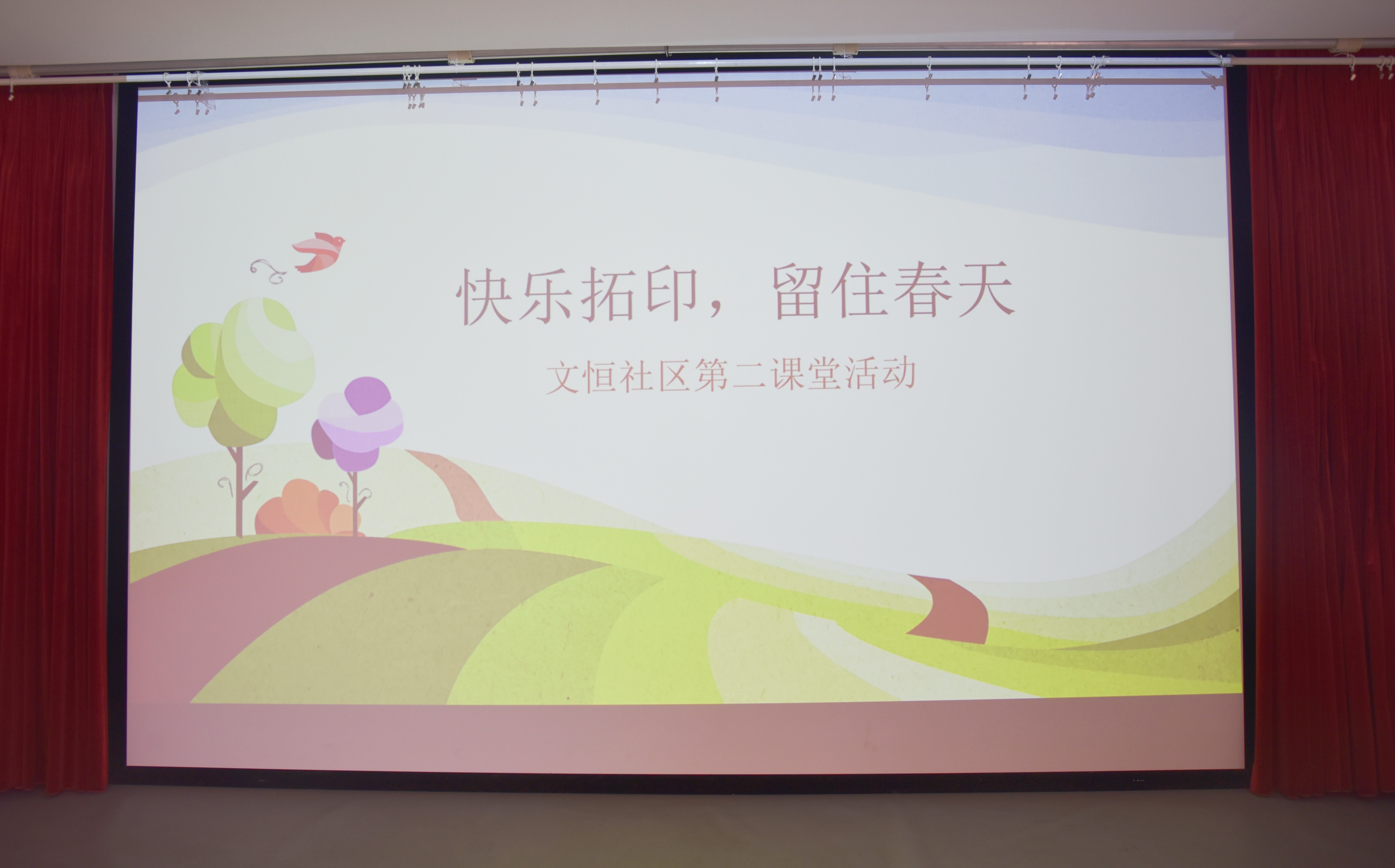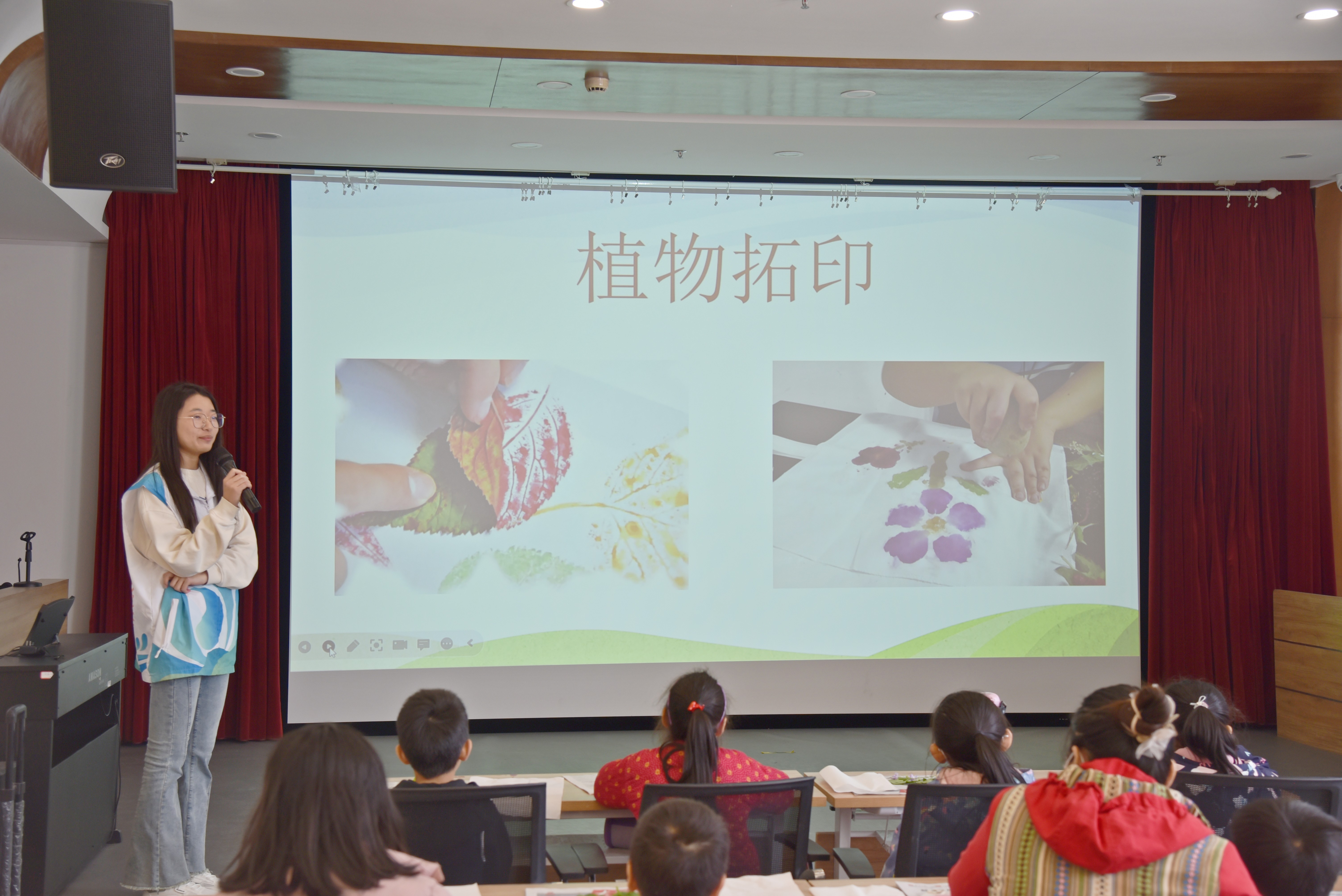 本次活动围绕“春日拓印”主题展开。活动前期,志愿者们认真学习拓印知识与技巧,并在校园内收集花瓣、树叶等拓印材料。志愿者们活用教育场所,在社区内以PPT讲解结合视频的方式进行教学,分享拓印知识、示范操作流程、展示拓印成果,加深了社区小朋友们对拓印的理解,进一步激发了他们动手制作的兴趣。在志愿者们的引领和指导下,小朋友们相互配合、互相帮助,借助软锤隔着透明塑料将拓印材料成功印在画布上,完成了一幅幅具有蓬勃春意的作品。在欢声笑语的氛围中,本次第二课堂社区服务活动圆满落幕。