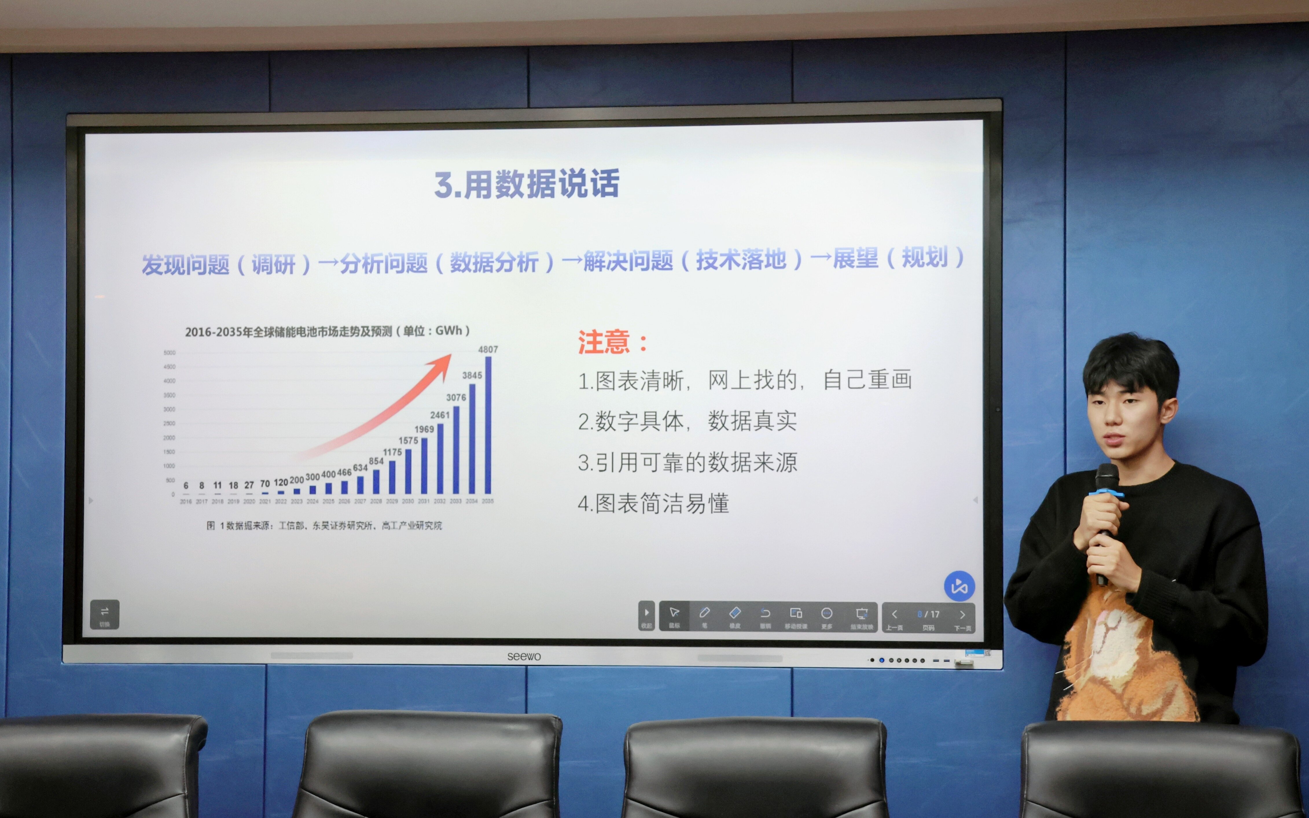 在本次分享会中,三位主讲人主要对“互联网+”大赛与大学生创新创业训练计划项目进行了详细讲解。首先,臧卓然对“互联网+”大赛进行了简单介绍,提出撰写计划书与制作PPT应有商业逻辑、核心技术和理论数据的支持,并在此基础上做到图文并茂,美观大方。李超琦从自己三次参加大学生创新创业训练计划项目的经历出发,阐述了不同类型的项目在不同阶段的执行要求,并就调查设计环节发表了自己的独特见解,深入浅出地讲述了自己的设计思路。最后,宋梦露从项目流程与备赛经验两方面展开,分享自己参与大学生创新创业训练计划项目的感悟。在简要说明了相关信息及流程后,她着重强调了比赛要专、点子要新、成员要合、过程可连四个方面的要求,并就此提出了专业性的建议,为学子们打开了思路。会议结束后,与会成员纷纷表示受益良多。