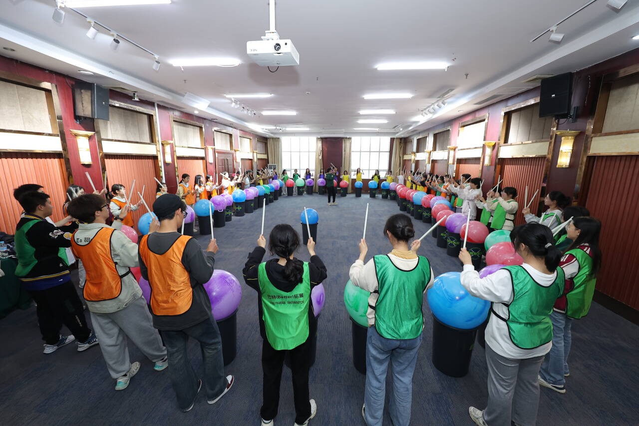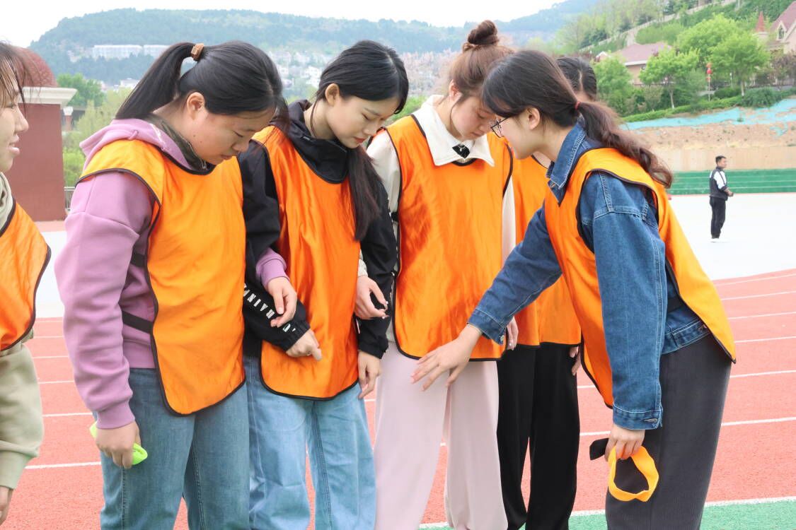 本次素质拓展活动主要进行了“蛟龙出海”、“盲人方阵”、指压板挑战赛、超级有氧鼓四个项目。活动伊始,成员们跟随教练的指令完成了“破冰游戏”和团队队旗设计,两队依次进行成果展示,现场气氛逐渐高涨。第一个项目“蛟龙出海”,极大地考验了团队成员之间的协作与配合,在队长的指挥下,大家口号响亮,步伐统一,最终圆满完成竞速比赛。随后,成员们开始挑战“盲人方阵”。这个项目要求全员在佩戴眼罩的前提下,寻找绳子并合作拼出面积最大的四边形。尽管队员们密切沟通、竭尽所能,但最终挑战失败,在教练的引导下,大家意识到只有事前分工明确,才能在任务过程中实现各司其职。第三个环节是指压板挑战赛,队员们努力完成接力任务,展现团队力量。最后,全员体验了时下新兴的超级有氧鼓项目。跟随律动的音乐敲打有氧鼓,既能释放压力,还能锻炼成员们的反应力、注意力、协调力。最后,全体成员合力完成有氧鼓舞蹈的排练和拍摄,深刻展现了山师国教人充满活力、迎难而上的精神风貌。