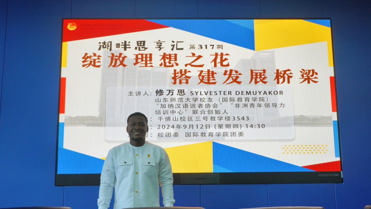 主讲人:修万思(SYLVESTER DEMUYAKOR),山东师范大学校友(国际教育学院),“加纳汉语说者协会”“非洲青年领导力培训中心”联合创始人。