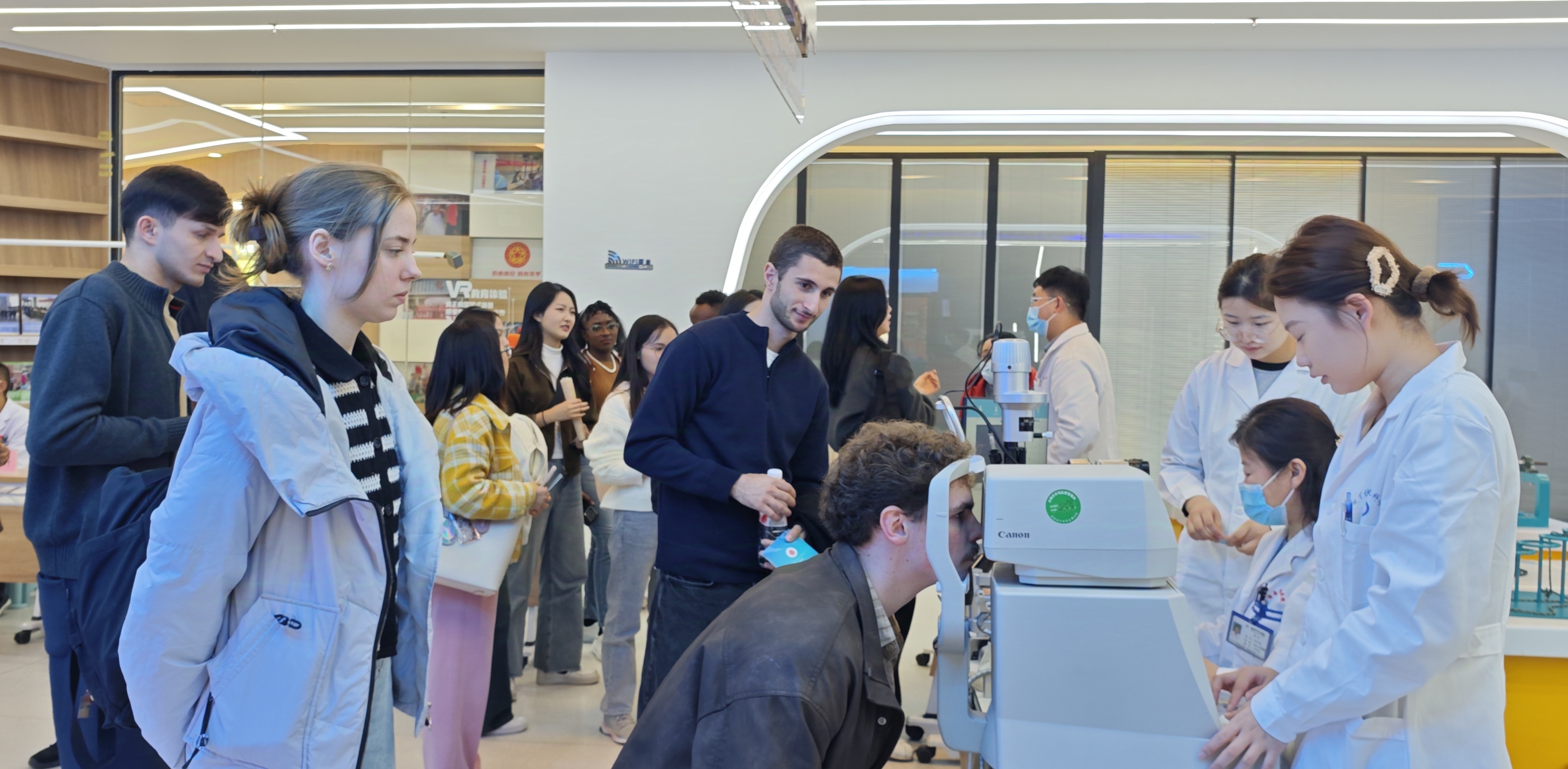 文恒社区居民委员会的工作人员热情接待了留学生们。当天上午正好赶上了一系列社区活动,有企业与社区共建阅读场地的捐赠仪式,有视力保护科普和义诊活动。留学生参与活动,直接接触社区党组织与辖区单位的共建,看到社区工作者如何细心地帮助年长的居民。同学们对他们的服务精神非常钦佩。