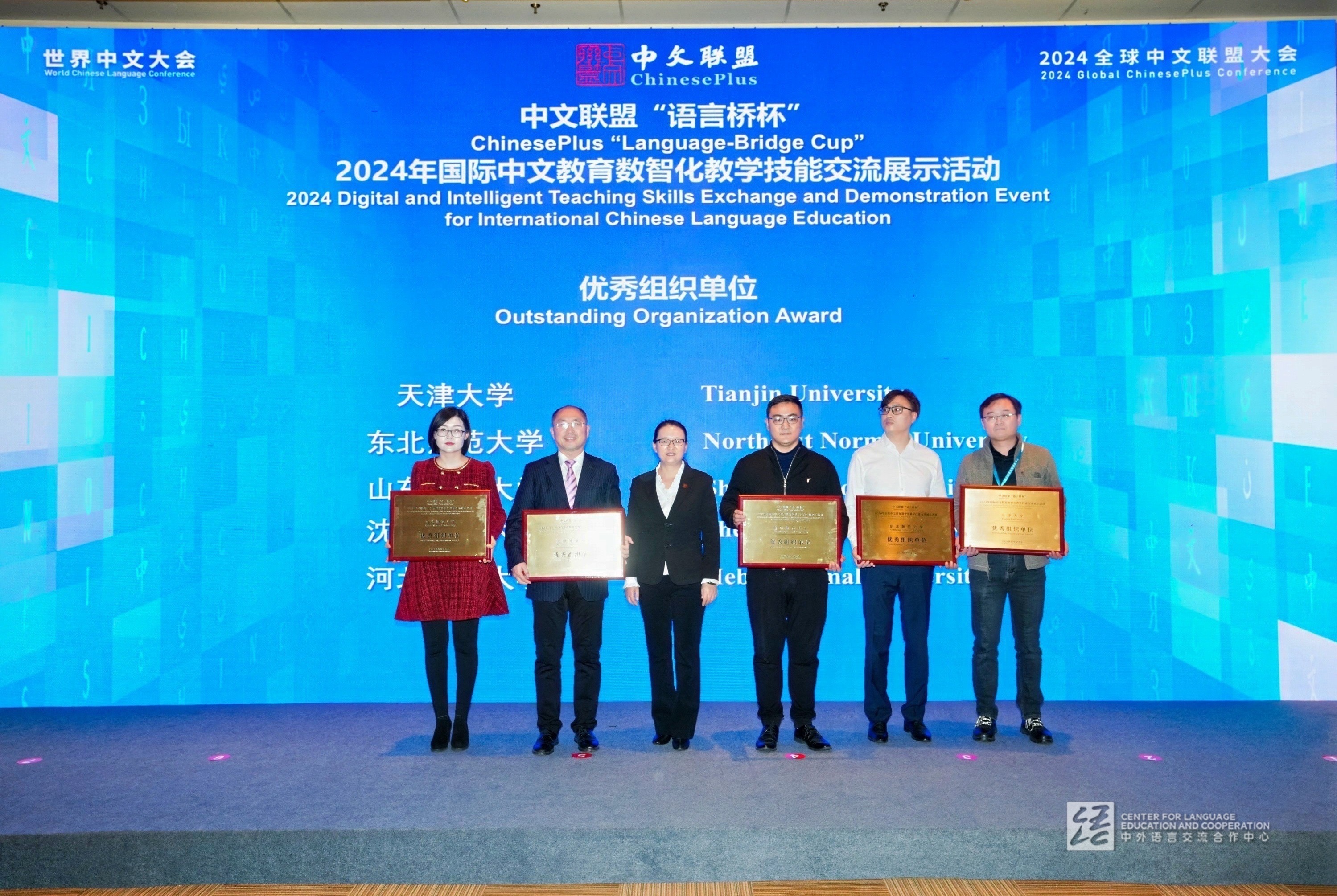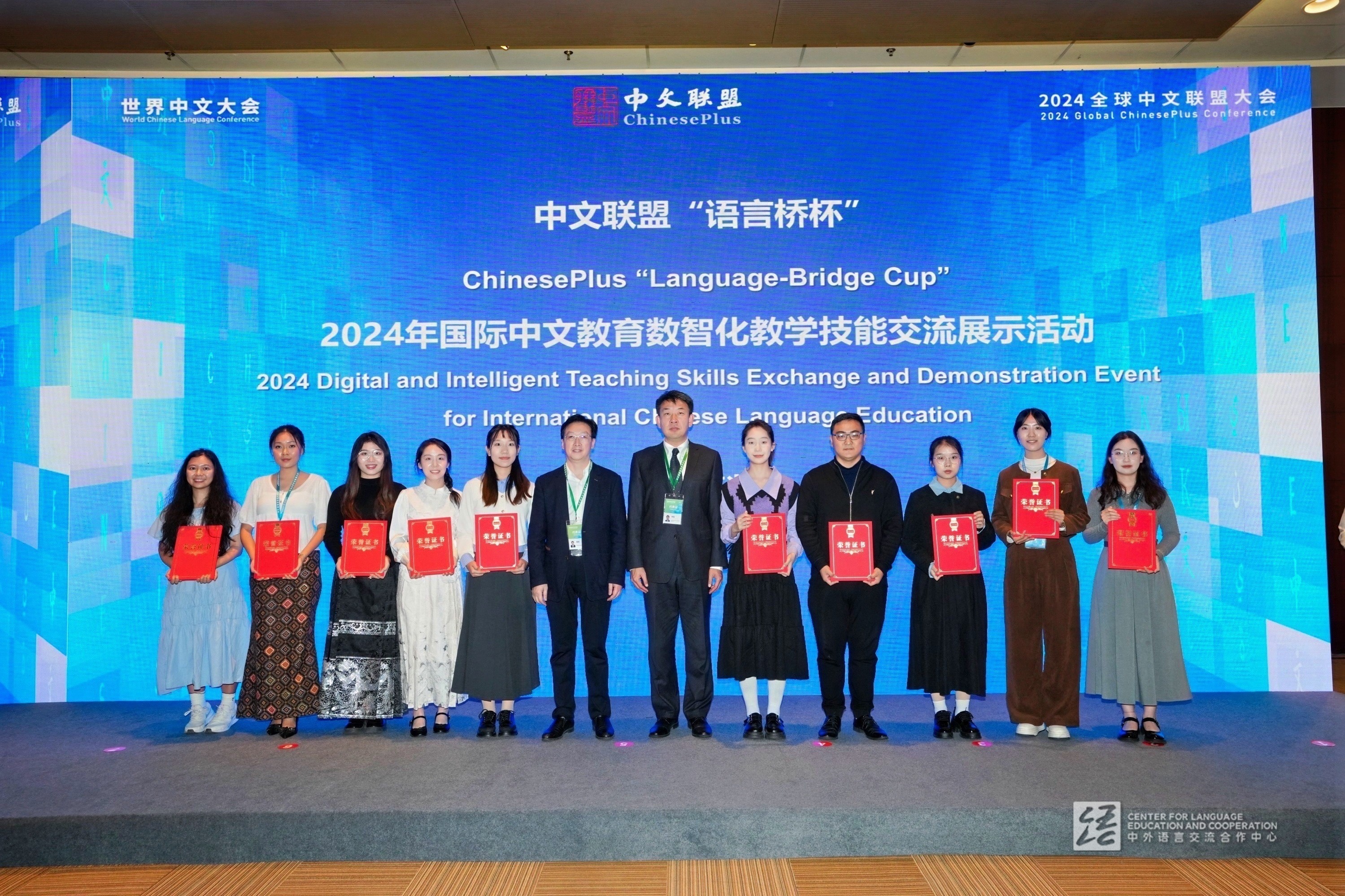 在“2024年度全球中文联盟专项会议”上,山东师范大学荣获中文联盟颁发“语言桥杯”国际中文教育数智化教学技能交流展示活动“优秀组织单位”奖牌;国际教育学院孙钱雨、庄斐琪、陈秋绒(留学生)等3名本科生荣获中文联盟颁发“语言桥杯”国际中文教育数智化教学技能交流展示活动二等奖;孙钱雨、庄斐琪等2名学生同时获“闪亮之星”称号。此前,中文联盟“语言桥杯”国际中文教育数智化教学技能交流展示活动于10月份在天津大学举办,国际教育学院副院长郑翠率领6名学生参赛,在许芃、庄庭兰、黄长彬、陈松林等老师的前期指导下,以上3名学生脱颖而出,为学校赢得荣誉。