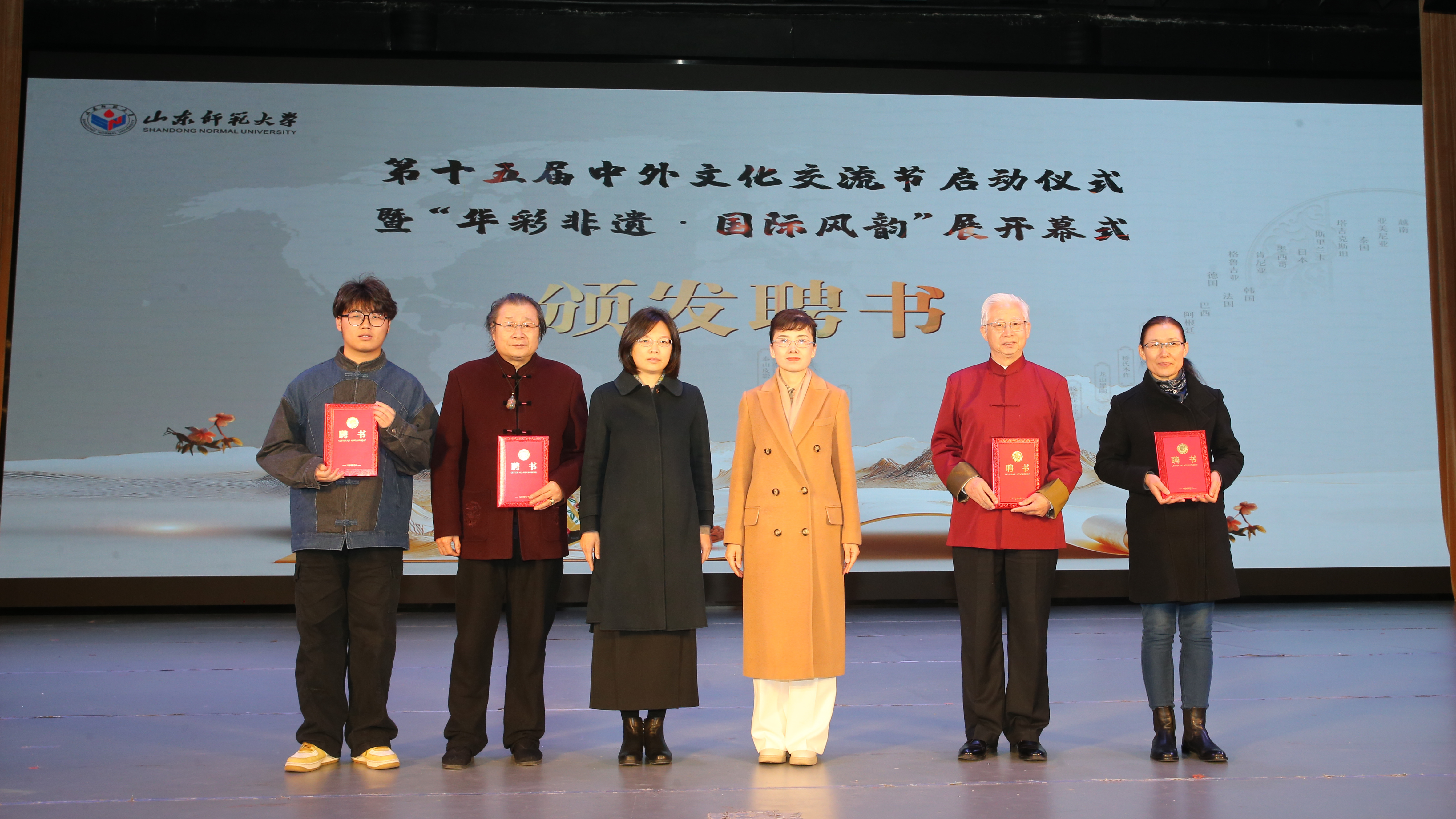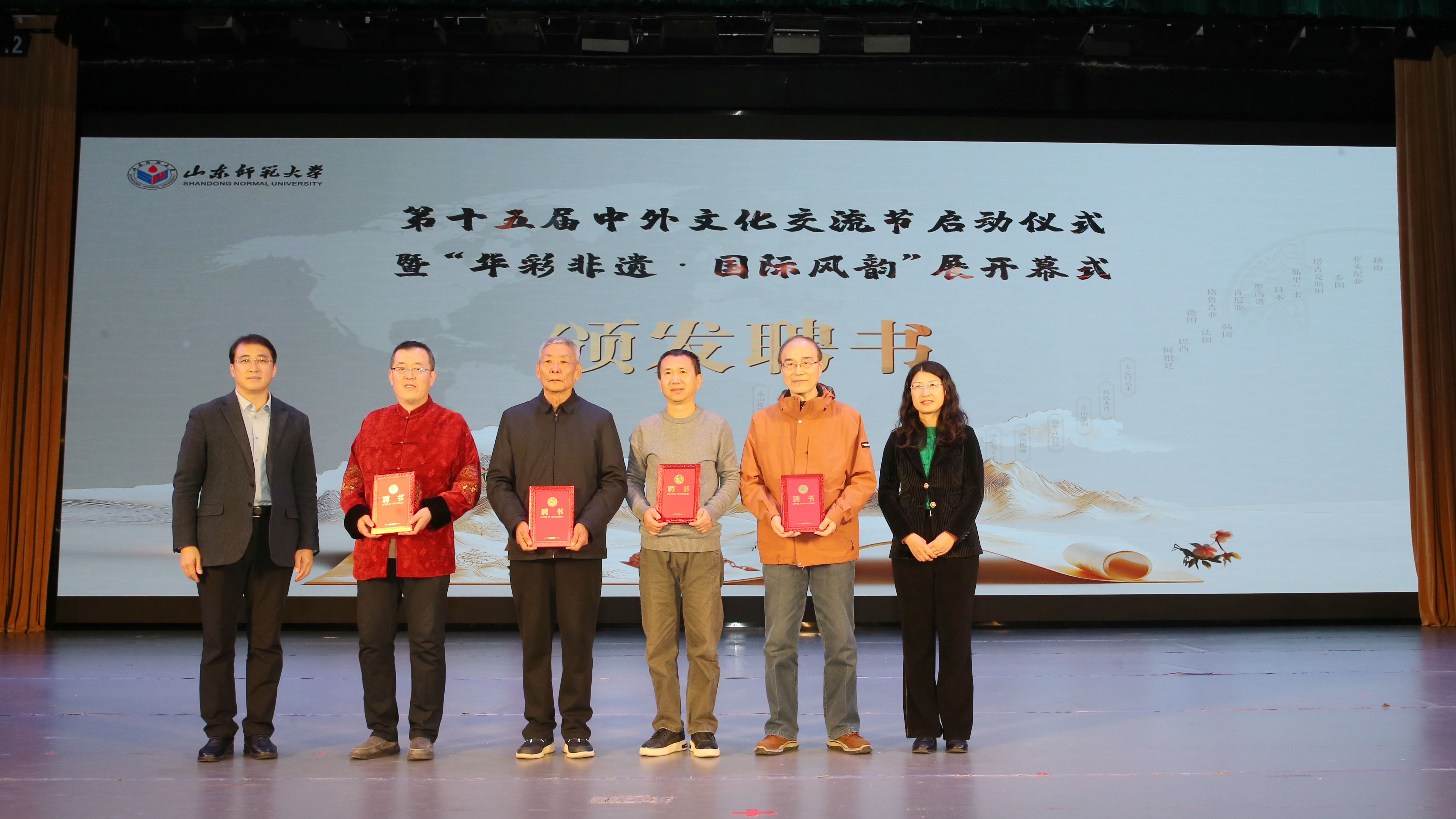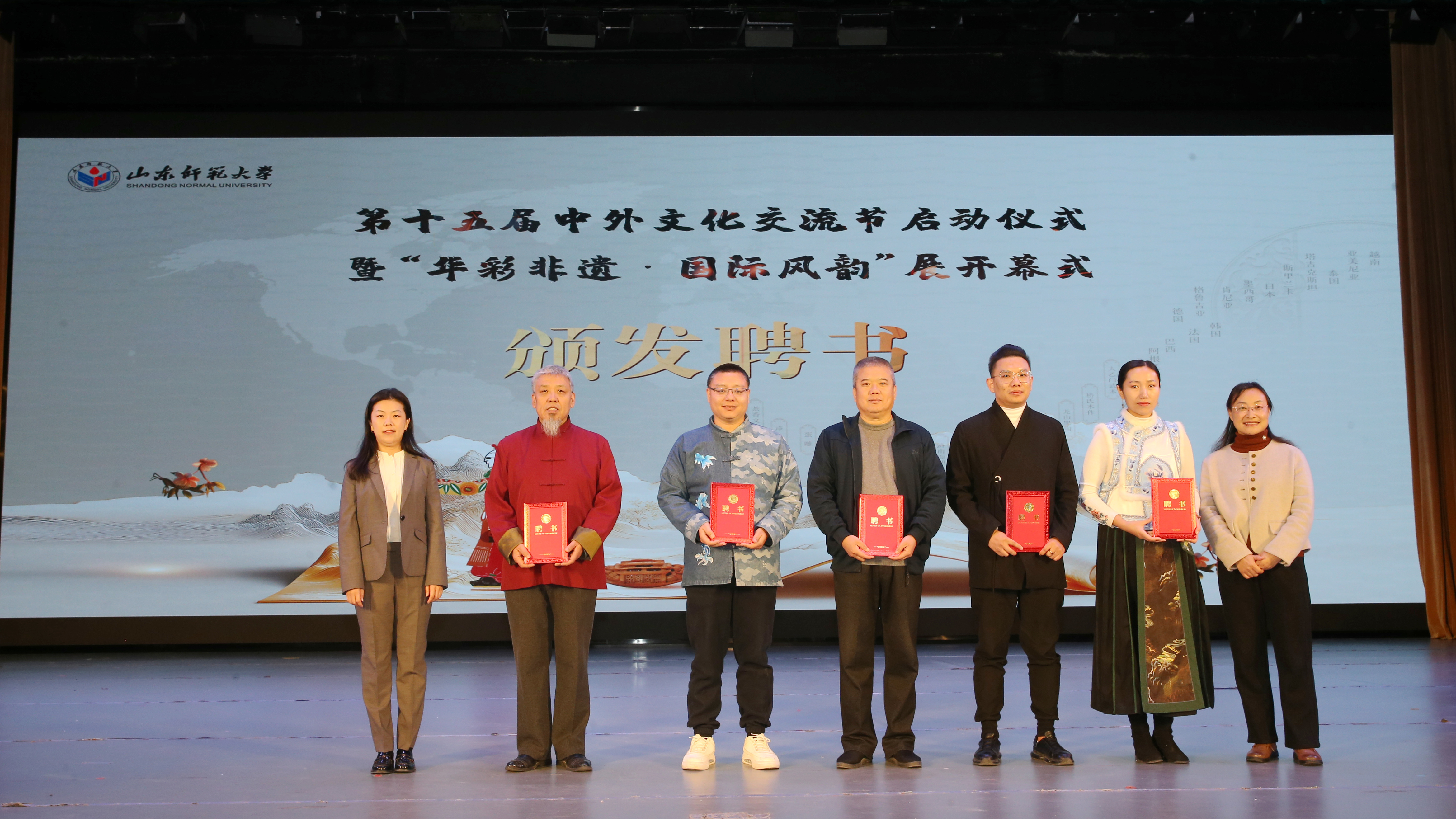 为传承中国非遗文化,丰富在校学生的文化生活,创新高校实践课程内容和教学方法,此次开幕式上国际教育学院(留学生工作办公室)向单孟渤等17位非遗项目传承人颁发来华留学教育“中华文化校外实践导师”聘书。