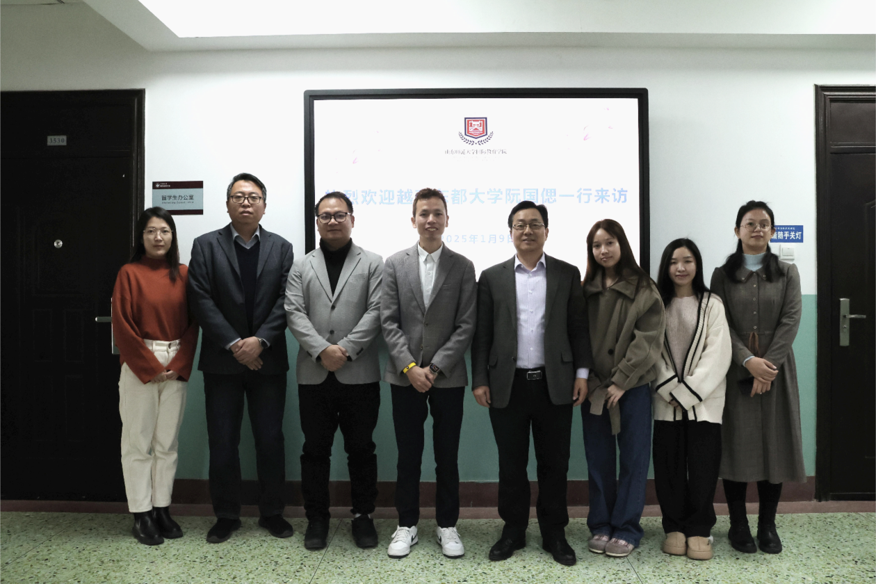 1月9日,越南河内东都大学外文系主任阮国偲(NGUYEN QUOC TU)、国际交流与合作处副处长孔明泰(KHONG MINH THAI) 一行访问国际教育学院,国际教育学院院长、留学生工作办公室主任马茂祥、留学生工作办公室相关人员与来访客人进行了交流座谈。