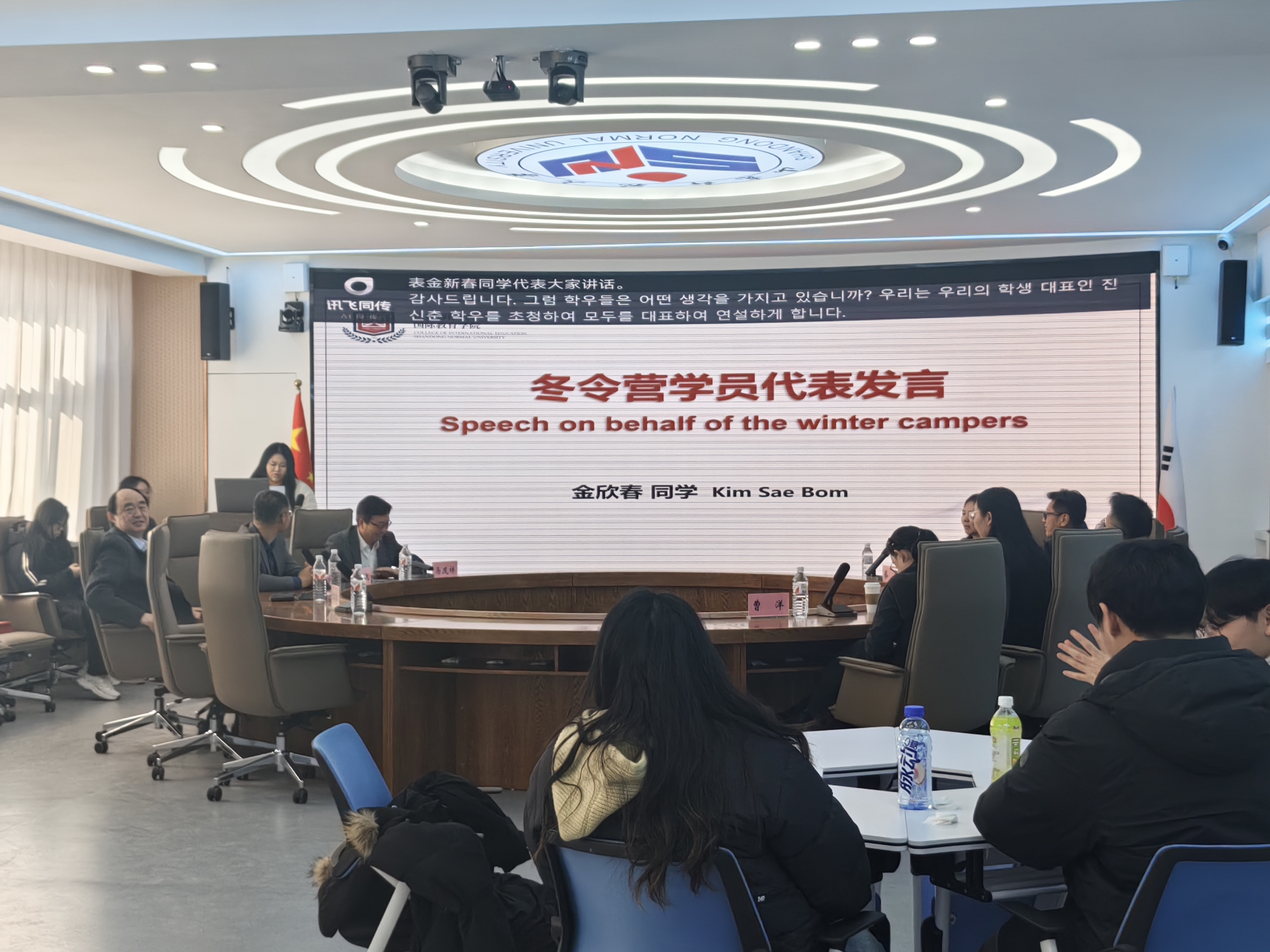 教师代表孙志君老师肯定了同学们在此次冬令营中良好的学习态度和积极的表现,她指出,此次冬令营的顺利结营,不仅标志着一段学习旅程的结束,更预示着未来合作的开始。期待未来有更多的韩国同学来到中国,学习汉语,了解中华文化,开启新一段中韩两国青年的心灵交流之旅。韩国又石大学孔子学院教师代表崔镐硕老师表达了对中方老师的深切谢意。他提到,在冬令营期间,中方老师在教学和生活上都给予了同学们极大帮助。正是因为中方老师们的付出,冬令营才如此顺利,学生们才会收获满满。