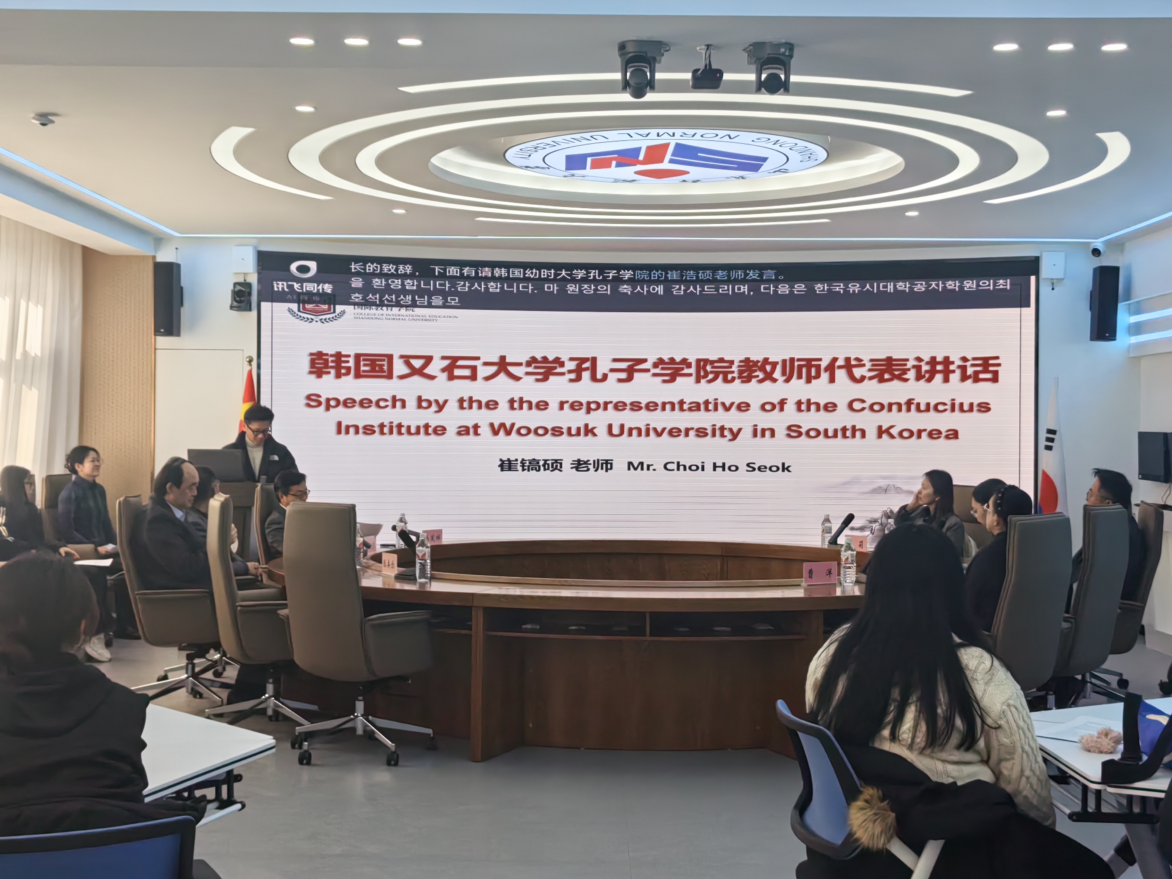 2月25日由教育部中外语言交流合作中心主办、山东师范大学承办的“汉语桥”2025年韩国又石大学孔子学院冬令营顺利结营。国际教育学院院长马茂祥、党委书记刘金凯、留学生教育系主任常庆丰、韩国又石大学孔子学院中方院长蔡莉、教师代表崔镐硕及相关教职人员出席此次结营仪式。