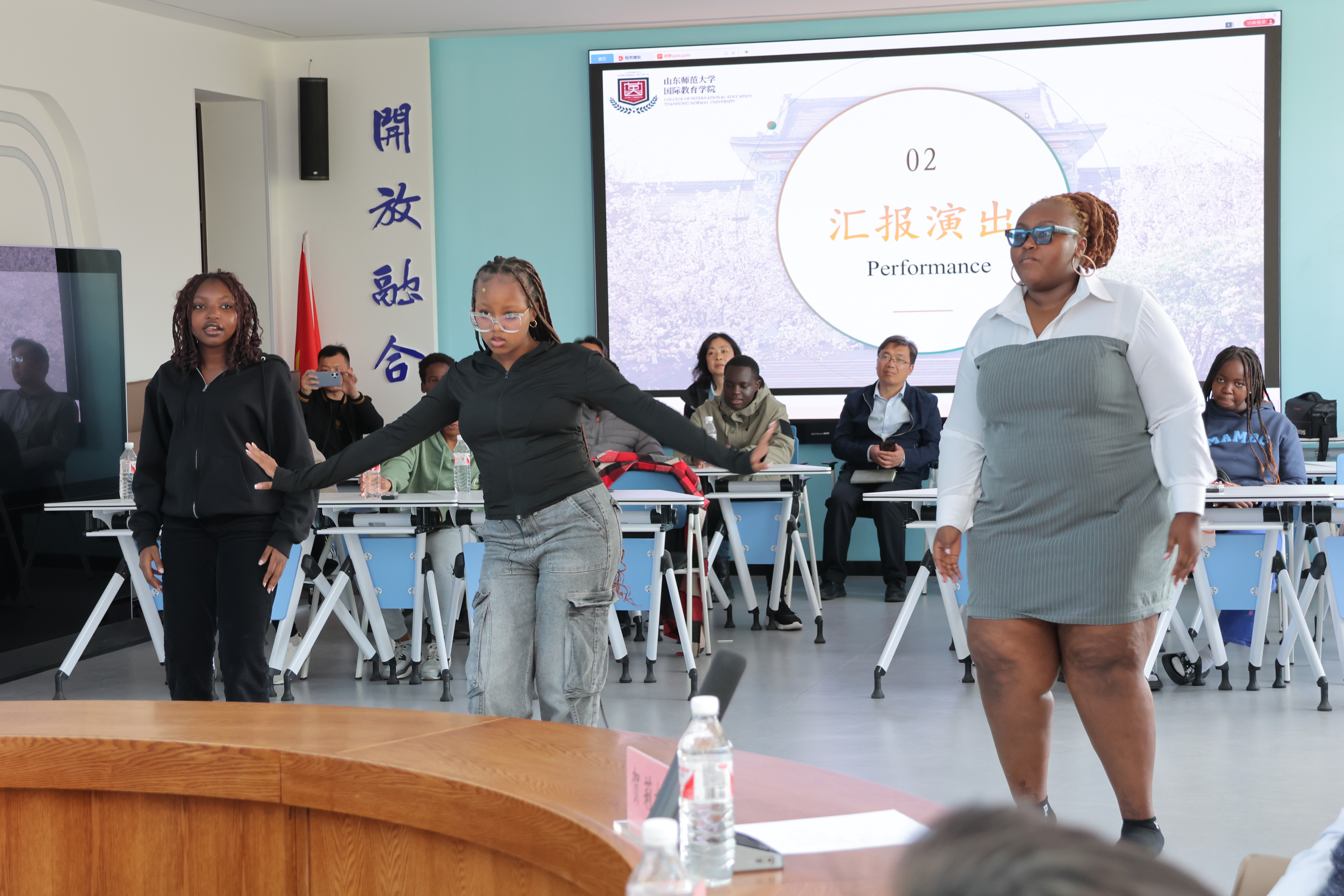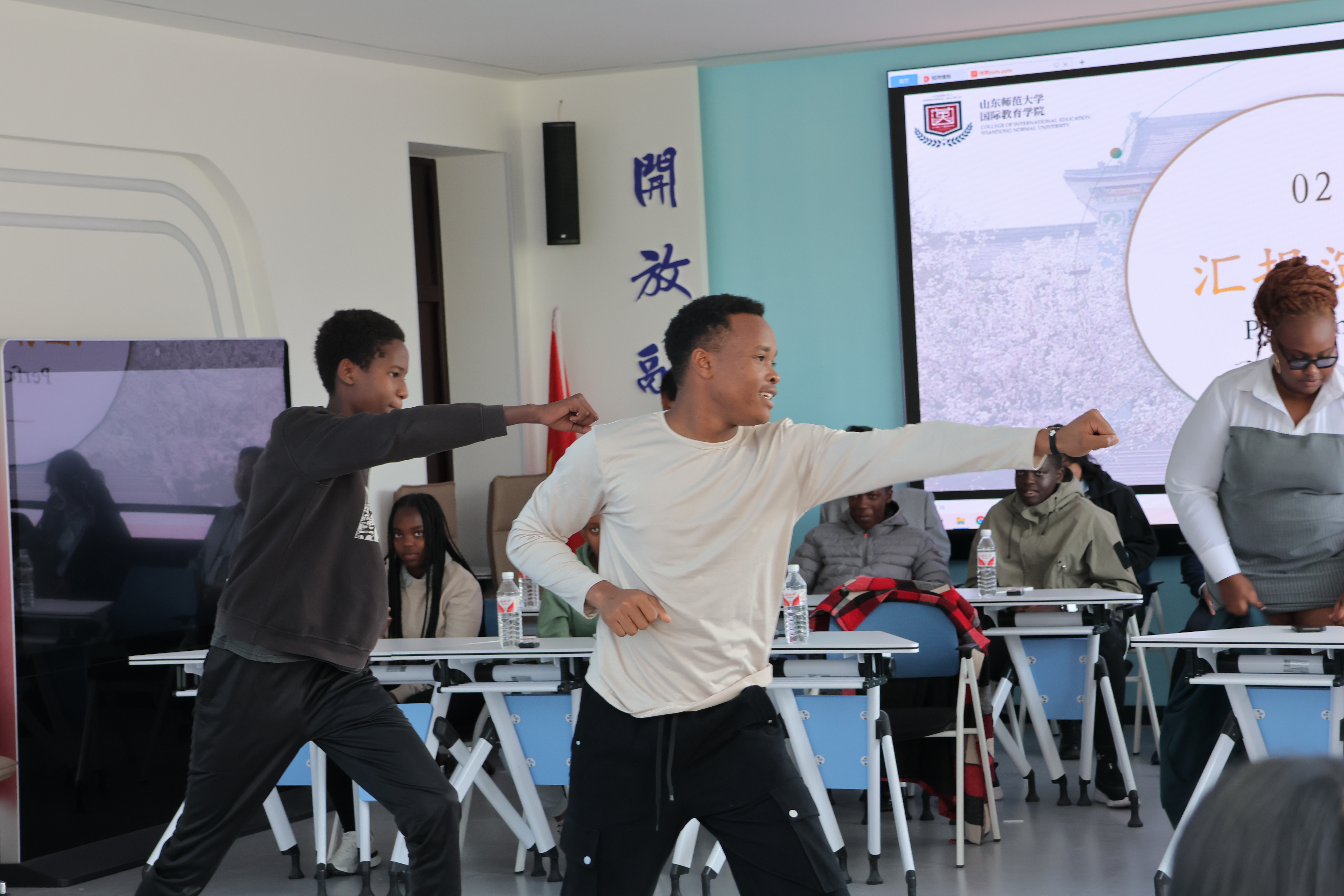仪式现场还播放此次研学回顾视频,一幕幕画面勾起同学们的共鸣,现场掌声与欢呼不断。随后,学员们展示了研修成果:肯尼亚学员演唱中文经典歌曲《甜蜜蜜》,歌声清澈,感情真挚;三位肯尼亚学员以热情洋溢的舞蹈展现非洲大地的活力;中国武术表演则飒爽利落,将现场气氛推向高潮。最后,刘金凯与马茂祥为同学们颁发结营证书,为此次研修画上圆满的句号。