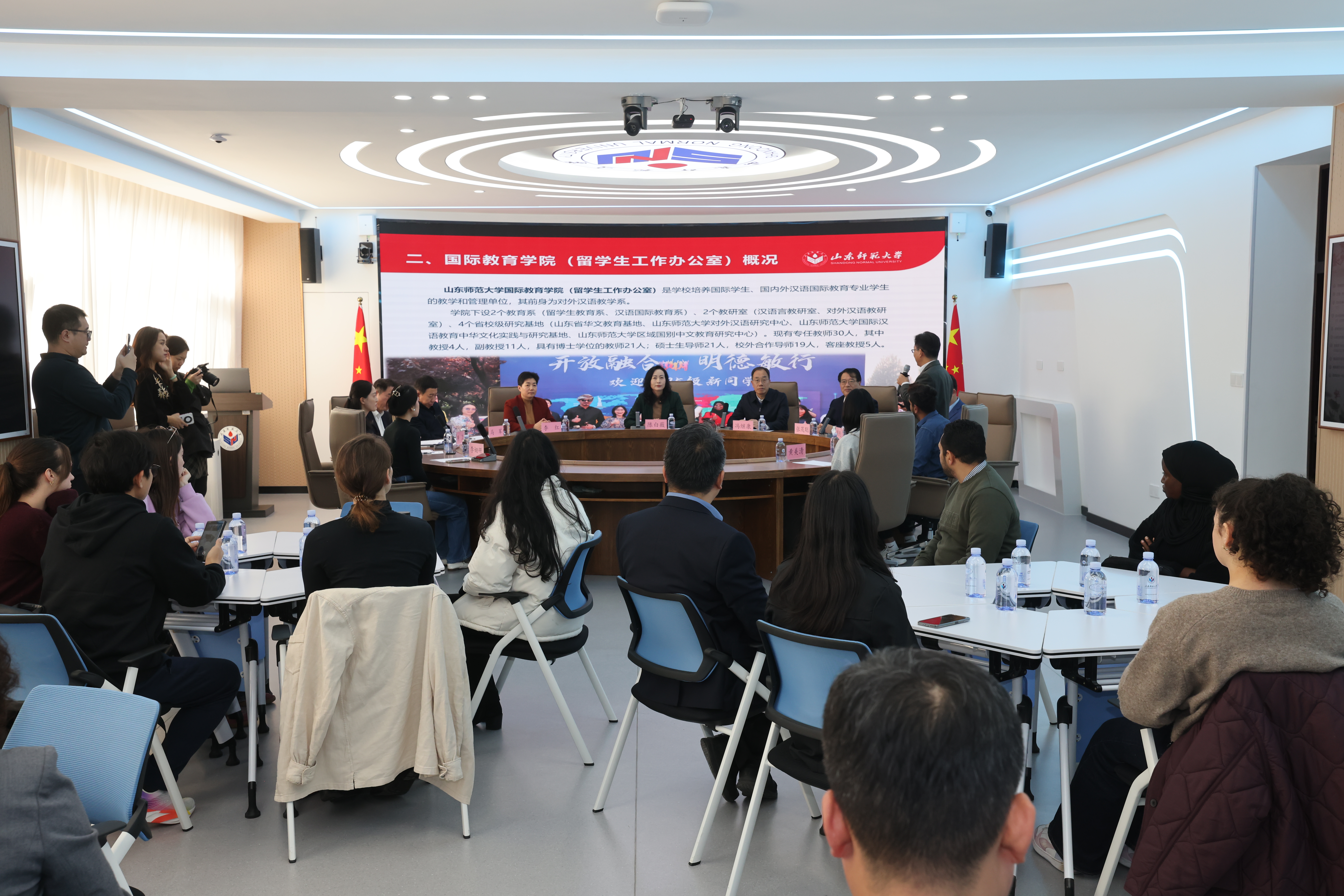 10月24日,山东省委外事办公室主任陈白薇来学院调研并与省友城奖学金项目国际学生代表座谈,校党委书记冯继康、副校长张茂聪、相关职能部门负责人参加活动。