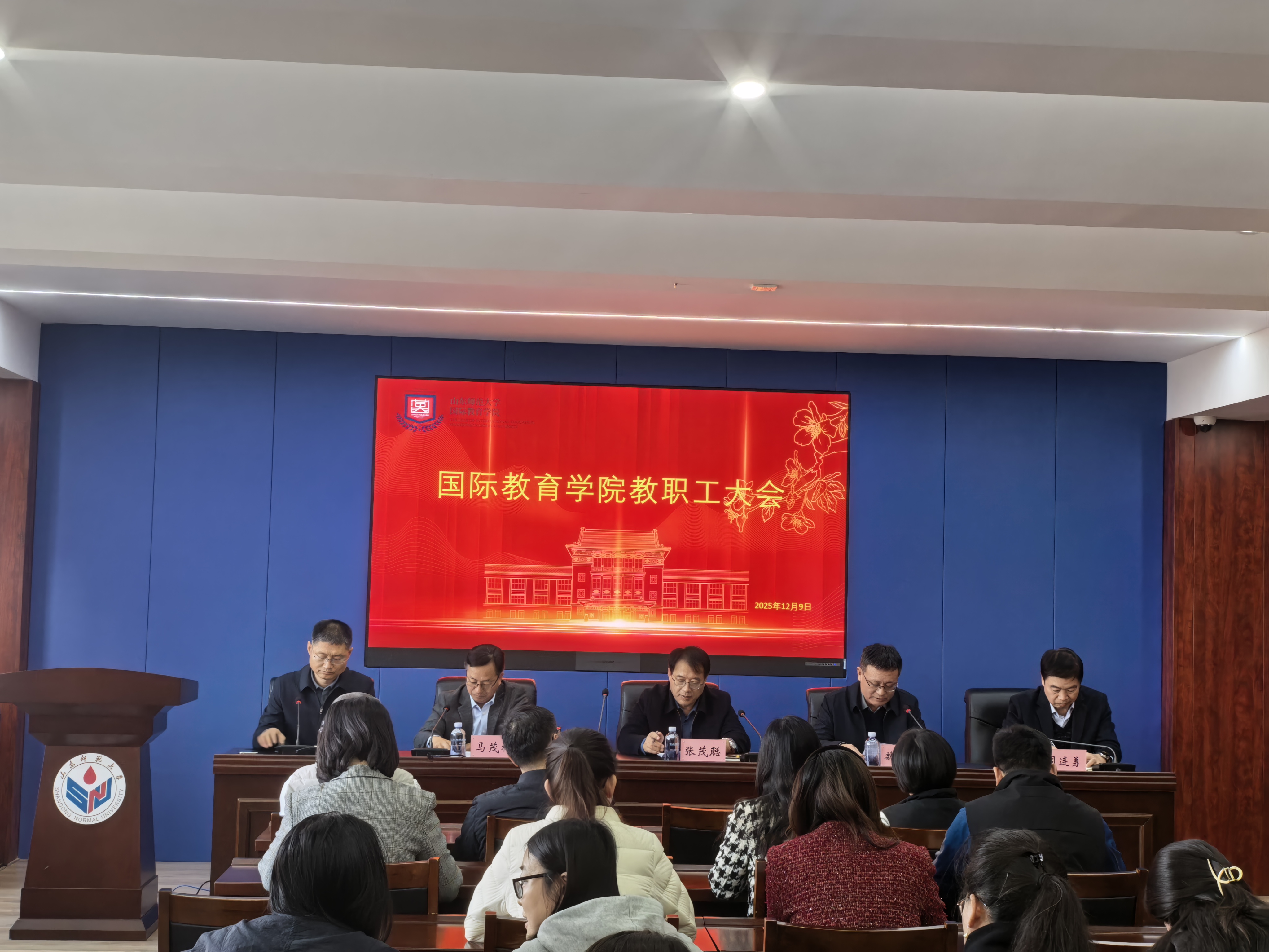 12月9日下午,国际教育学院召开教职工大会。学校党委常委、副校长张茂聪,党委常委、组织部部长魏学江,国际教育学院新老领导班子成员及全体教职员工参加会议。会议由学院党委书记刘金凯主持。