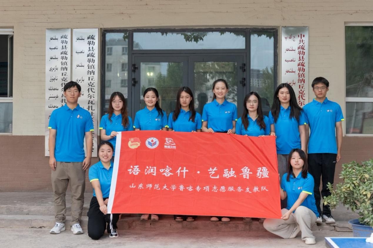 五是开展社会实践。学院积极组织暑期“三下乡”社会实践活动,其中“语润喀什·艺融鲁疆”鲁喀专项志愿服务队前往喀什开展支教工作。在课程中向喀什学生传授中华优秀传统文化,传递中华民族共同体意识,在实践调研中搭建起一座文化交融的桥梁,思考新时代民族文化融合发展的新路径。