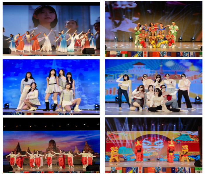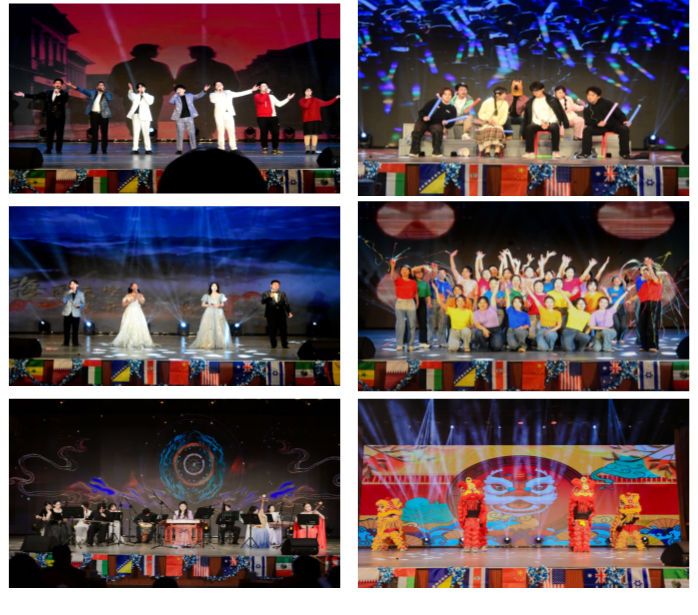 晚会由来自中国、肯尼亚、巴基斯坦、巴西的四位同学主持。开场舞气势磅礴,寓意吉祥,瞬间点燃全场气氛;《桃花源记》融合国风舞蹈与留学生汉语诗朗诵,舞步翩跹,流转千年古韵,诗声朗朗,吟诵万里知音,中国古典艺术在跨文化演绎中焕发新彩;一曲《我爱你中国》情真意切,一舞《美丽中国》身姿翩然,诉尽对祖国诚挚的热爱;器乐表演《敦煌》以西域风情为骨,历史厚重为魂,透过大漠戈壁的雄浑气势窥见中国文明的瑰丽与深邃;热烈奔放的非洲舞、灵动飘逸的越南舞、活力四射的泰国舞、甜美元气的韩国舞轮番登场,尽显世界文化的多元魅力;中外学生合作的歌曲串烧,用歌声诠释青春与团结的力量;可亲可敬的辅导员与学生共同带来舞蹈《Sweet Answer》,舞步热情洋溢,旋律动感十足,将全场的氛围推向高潮;小品《安可》用细腻的表演,传递着人与人之间的温情与善意;舞蹈表演《第一天》节奏明快,抬手转身间满是蓬勃活力,闪耀青春的热烈光芒;最后,在《我们都是追梦人》激荡的青春勇气与逐梦回响中,这场跨越山海、洋溢青春的晚会圆满落幕。