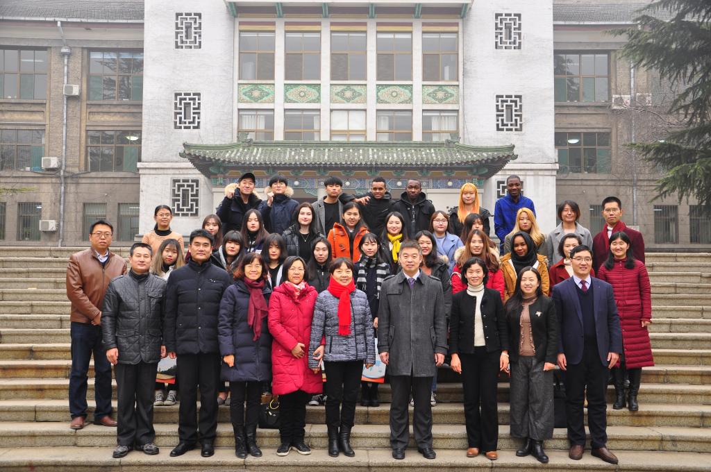 典礼结束后,学院向留学生们赠送了纪念品并集体在文化楼前合影留念。本学期共有来自美国、英国、法国、韩国、肯尼亚、吉尔吉斯斯坦、科威特、苏丹、巴基斯坦、坦桑尼亚等10个国家的50名留学生顺利结业。
