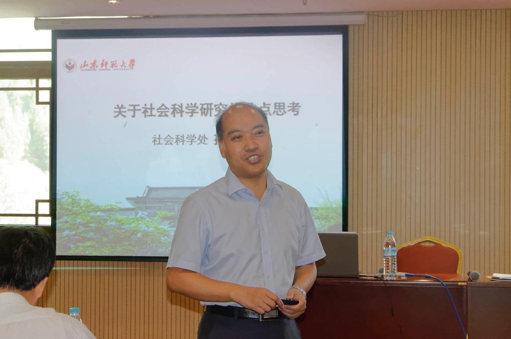 孙书文教授作了题为“关于社会科学研究的几点思考”的报告。报告从目前学校、学院和教师的焦虑破题,阐释了“山东师范大学”作为山东省高校排头兵的内涵。接着系统梳理了目前科研的三大项目:成果、立项和获奖,由此揭示了几点启示,包括选题中的问题意识、长期积累和学术研究等,最后探讨了中国发展与国际汉语教学研究的关系,指出当前是我院结合自身办学特色,推进科研发展的利好时期。孙教授的报告既有理论深度,又有宏观思考,对我院科研发展具有重要的启示意义。