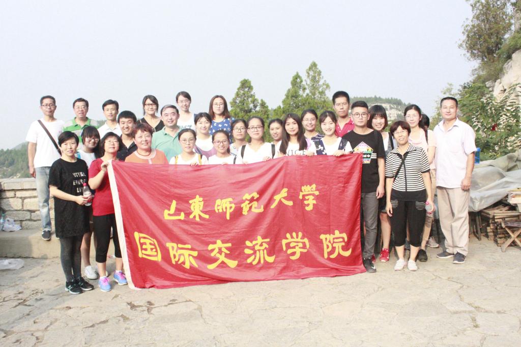 老师们带领中外学生畅游佛慧山,体验其厚重历史文化,在大雄宝殿,瞻仰大佛雕塑,学生们不禁发出慨叹,并纷纷拍照留念,老师们积极为留学生们讲解“大雄宝殿”题词及巨佛头像由来。离开大雄宝殿,山势渐陡,登临山顶俯瞰泉城,鳞次栉比的现代建筑,间或诗情画意的古典建筑,柳浪环绕的明湖,深深地吸引着老师和同学们,峰峦挺秀,沟壑深幽,远离城市的喧嚣,老师们似乎都倍感轻松。移步山谷,清溪萦绕,池水清湛,老师们为中外学生认真讲解“长生泉”、“甘露泉”、“秋棠泉”的相关故事,以及题刻“山高水长”、“逍遥游”的历史由来。漫步山间,肆意享受此处独有的清爽,师生并肩而坐小作休憩,加深彼此的了解。