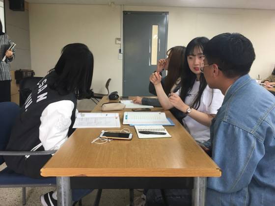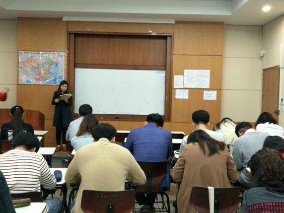 下午同学们去旁听了韩国汉语教师吴眩妵老师的初级课,中国学生被分散坐在教室的不同位置,以一对多的形式给韩国学生进行口语教学。都是大一的韩国学生,大家虽然基础不扎实,但是学习兴趣很高,会主动向中国学生提问各种各样的问题。关于文化、人口、习俗、家乡等等等等,大家在课上不仅学习了新知识,也更加了解了彼此的文化。