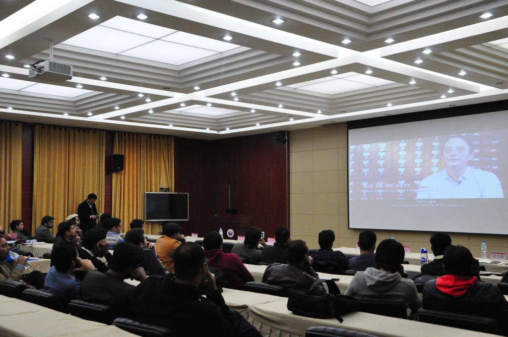 入学教育以观看山东师范大学英文宣传片作为开始,短短8分钟,学生们对学校有了一个较为直观又全面的了解。接下来,该项目主要负责人刘峰简要介绍了学校留学生教育的基本情况,重点解读了相关校规校纪、如何使用来华留学生保险、HSK考试安排等。此次活动直接针对留学生的签证、学习、生活问题,内容全面,指导具体,有助于学生们更好、更快的适应在校学习和生活,保证了项目效果和安全管理。