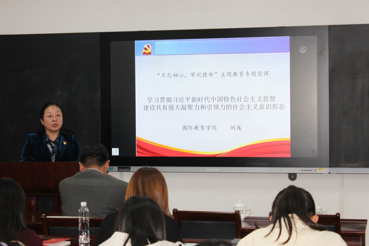 10月24日下午,国际教育学院(留学生工作办公室)在千佛山校区教学三楼3446会议室举办“不忘初心,牢记使命”主题教育专题党课,学院党总支书记刘彧主讲,学校主题教育工作第四督导组组长梁宾到会指导,学院全体党员参加学习,院党总支副书记、学校留学生工作办公室主任孙全志主持学习活动。