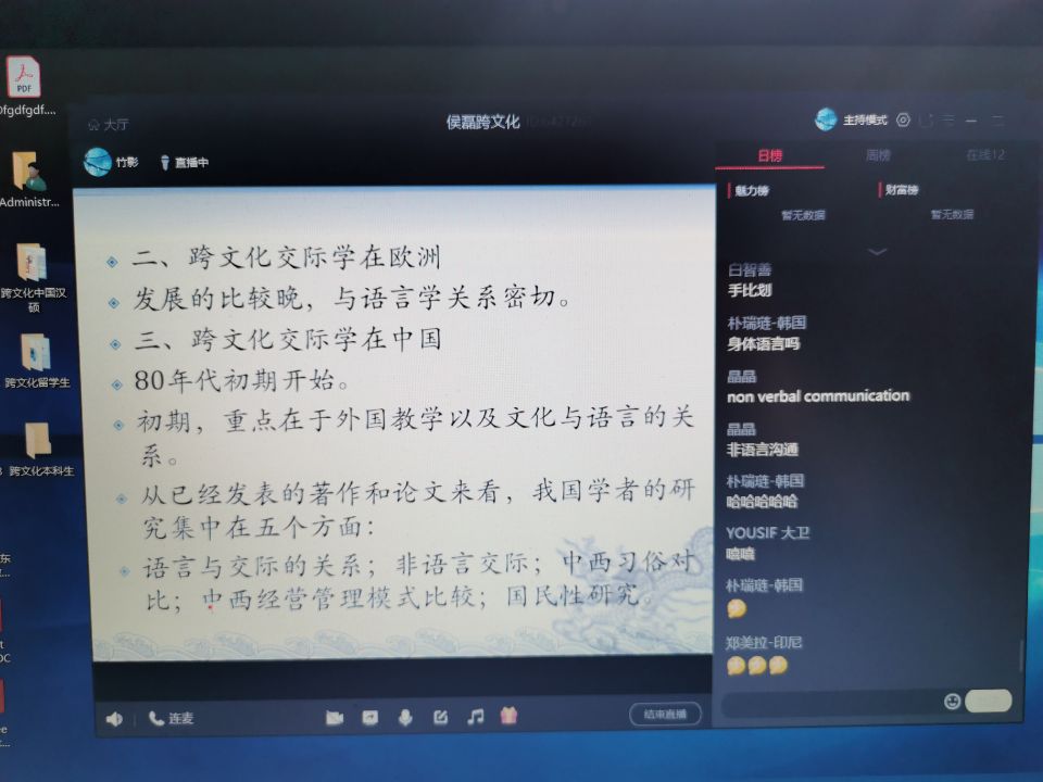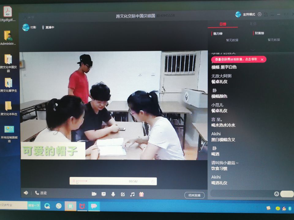 从已经开展网络教学的课程来看,总体情况较好,基本可以完成课堂教学目标。学生回答问题积极,与老师互动踊跃,教学活动进行顺利。其中,《中国概况》课程使用了中国高等教育学会外国留学生管理分会推荐的唐风汉语国际教育云平台上的《中国概况》课程,让留学生在世界各地都能“让教师如影随形,让学习随时进行”,解决了68名学院内外留学生的线上授课问题。