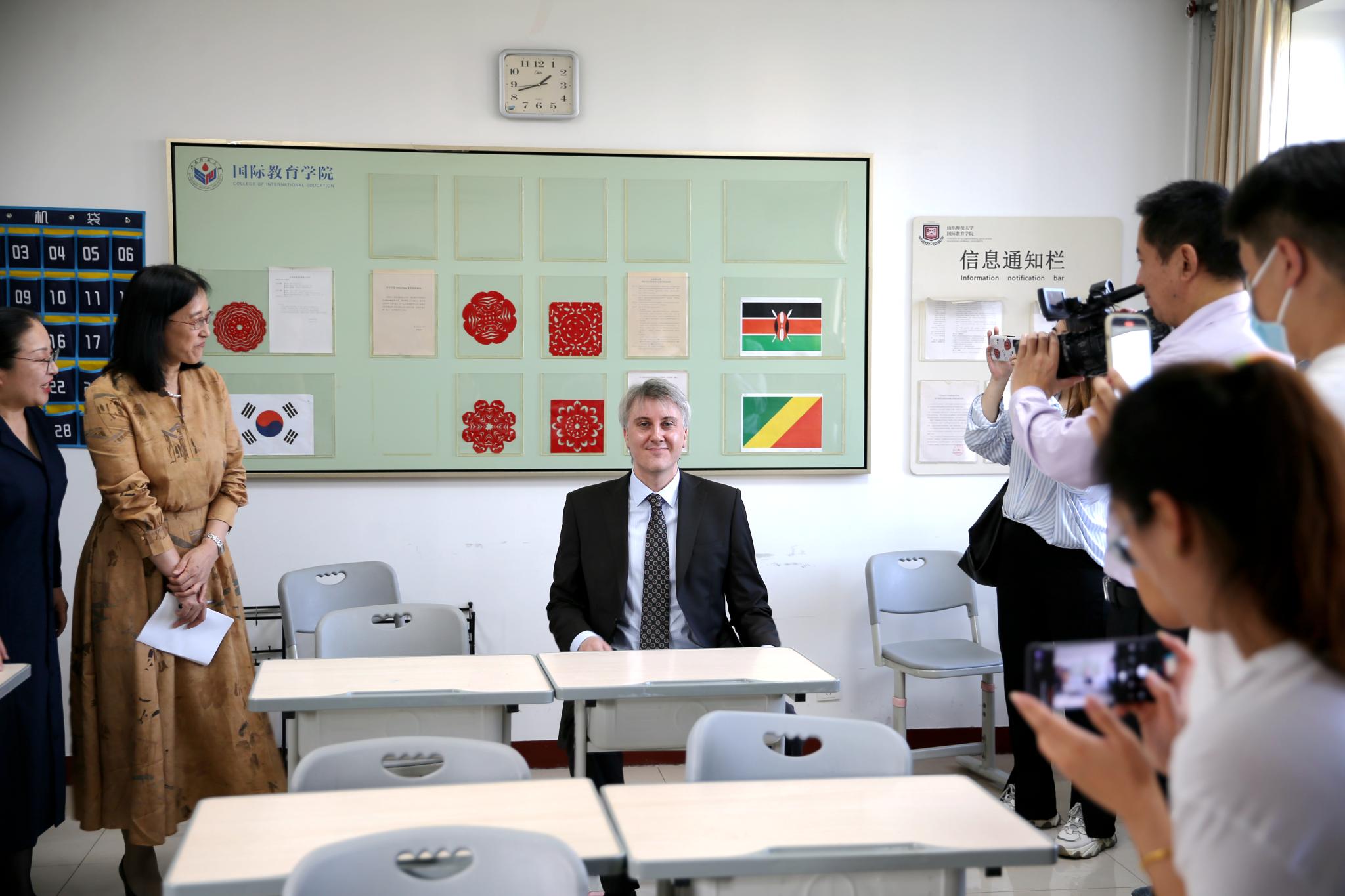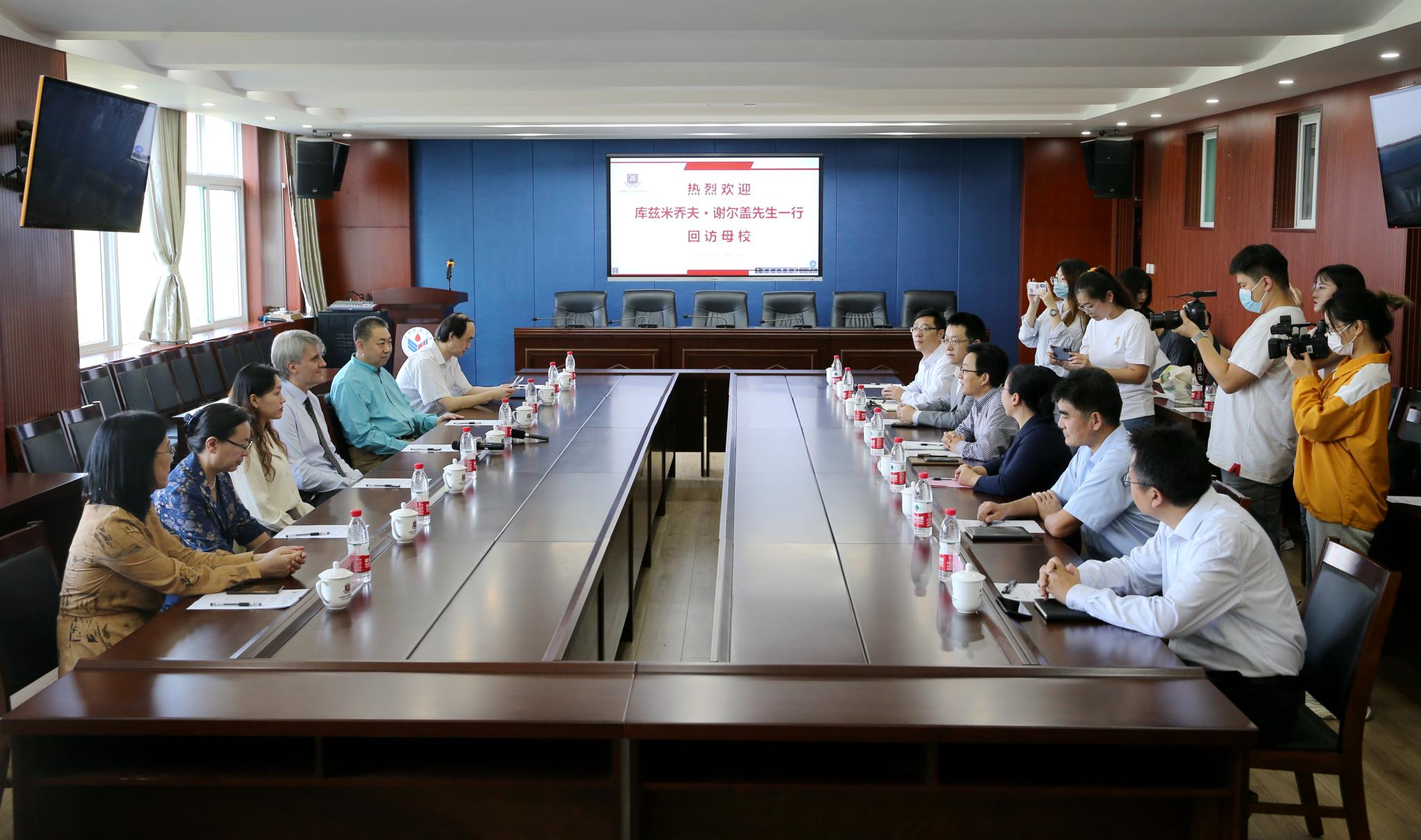 此次来访过程中,库兹米乔夫·谢尔盖先生还回到了曾经学习过的国际教育学院进行座谈,学院班子成员及部分老教师参加了座谈会。学院领导对库兹米乔夫·谢尔盖的来访表示热烈欢迎,也对其在国际中文教育以及中乌文化交流方面所做出的突出贡献表示赞赏和祝贺。老师们与库兹米乔夫·谢尔盖先生亲切交流其当年在高级班学习汉语的经历。库兹米乔夫·谢尔盖先生分享了他从小学习中文,及在山东师大学习汉语、太极拳,了解中国文化的经历,以及之后学习深造、教授中文及致力中乌外交工作的经历。